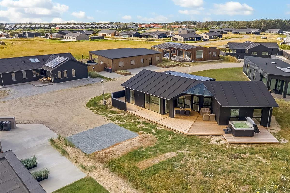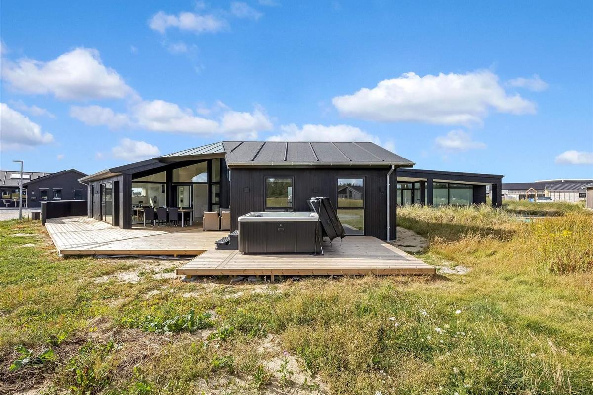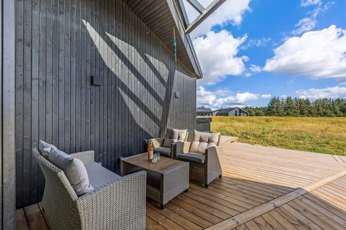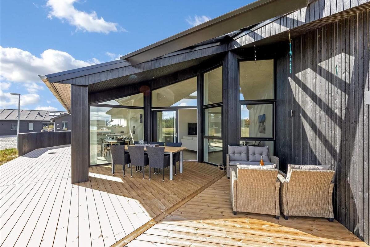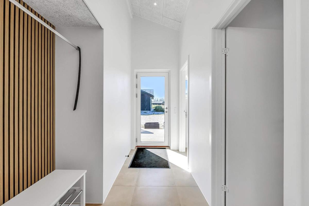 Haven og terrassen inviterer til både afslapning og aktivitet – uanset tidspunktet på dagen. Med flere terrasser, herunder en overdækket del, er det let at finde læ og sol. Der er god plads til leg og hygge, og fra huset er der kort afstand til både strand, by og indkøb – alt ligger inden for cirka en kilometer.