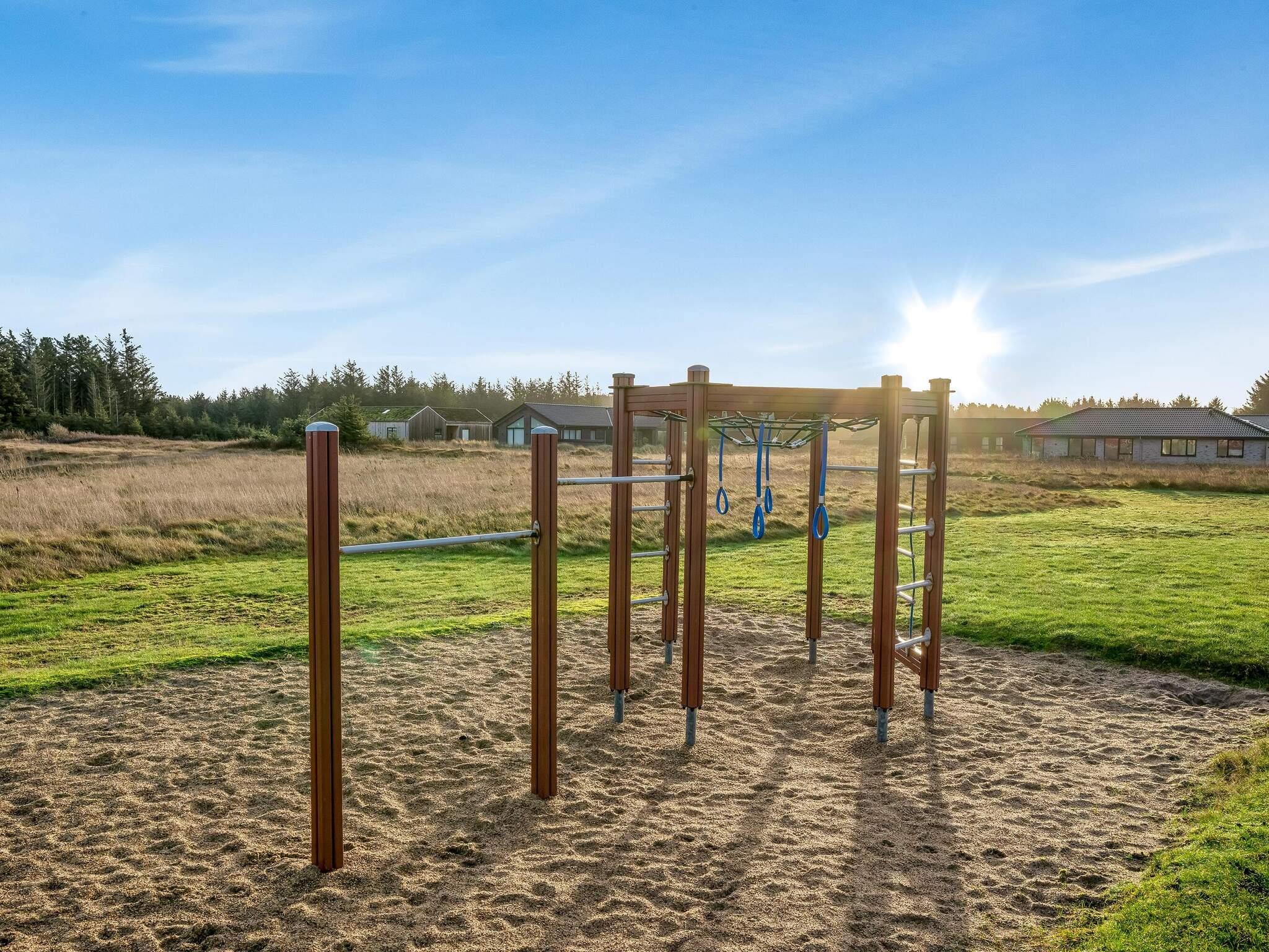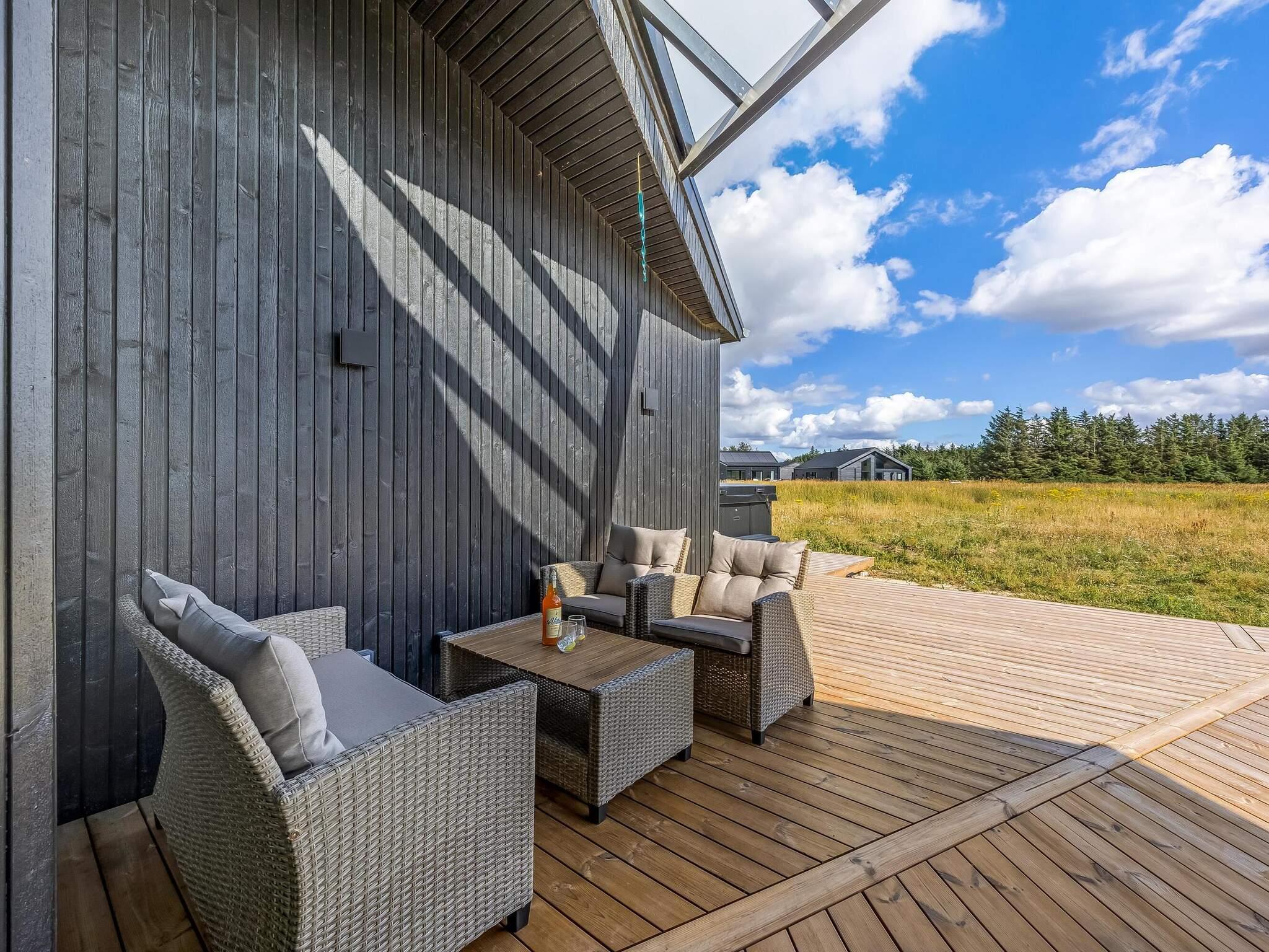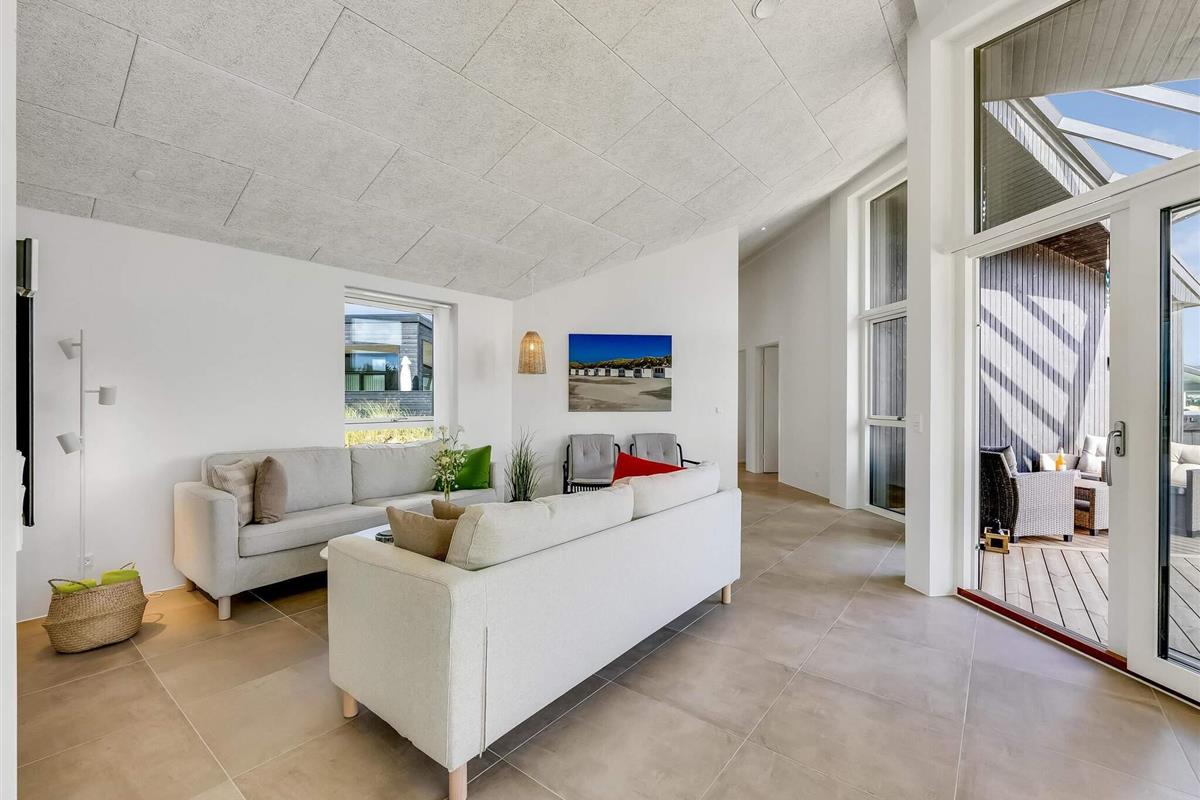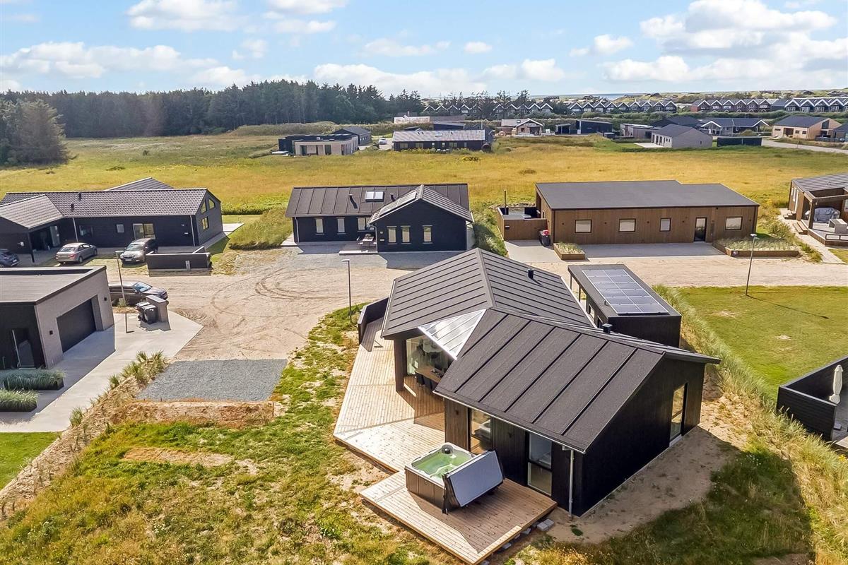 Haven og terrassen inviterer til både afslapning og aktivitet – uanset tidspunktet på dagen. Med flere terrasser, herunder en overdækket del, er det let at finde læ og sol. Der er god plads til leg og hygge, og fra huset er der kort afstand til både strand, by og indkøb – alt ligger inden for cirka en kilometer.