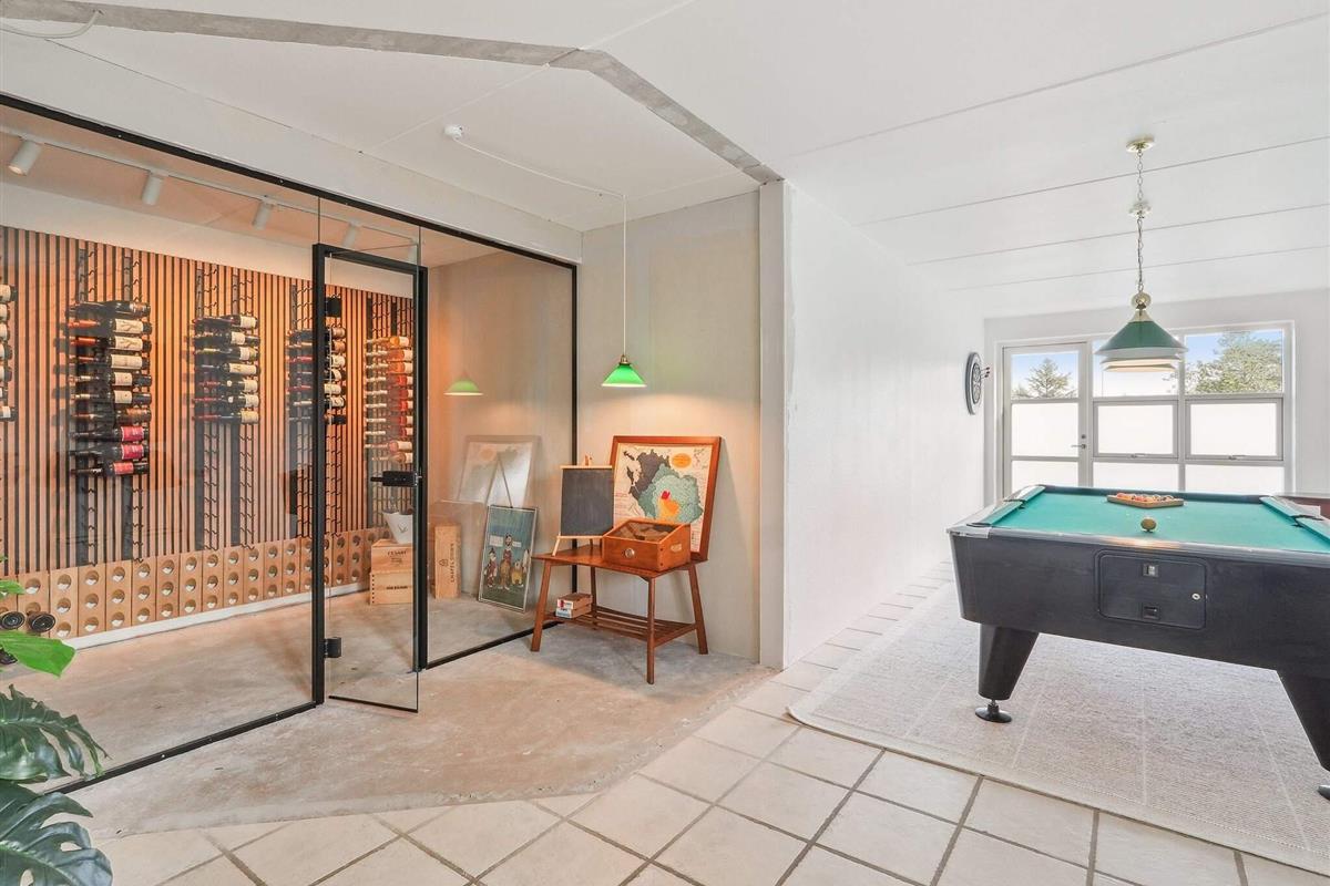 I den anden bygning er der aktivitetsrum med billard, dart og bar, og derudover køkken og badeværelse samt 1 soverum med 1 sovesofa til 1 person + 1 enkeltseng. På bygningens 1. sal er der en stue og 2 soverum med dobbeltsenge + i et af rummene er der udover dobbeltsengen en barneseng i størrelsen op til 10 år. I stueplan er der gulvvarme og på 1. sal er der radiatorer - i stuehusets ene badeværelse i stueplan anvendes håndklædevarmeren som opvarmning og der er desuden brændeovn i køkkenalrummet.