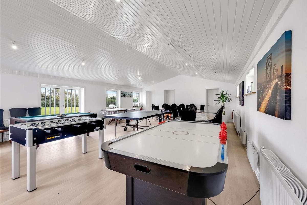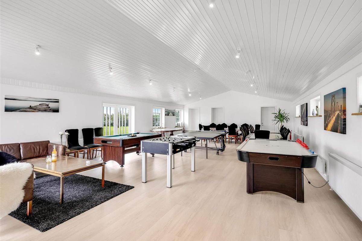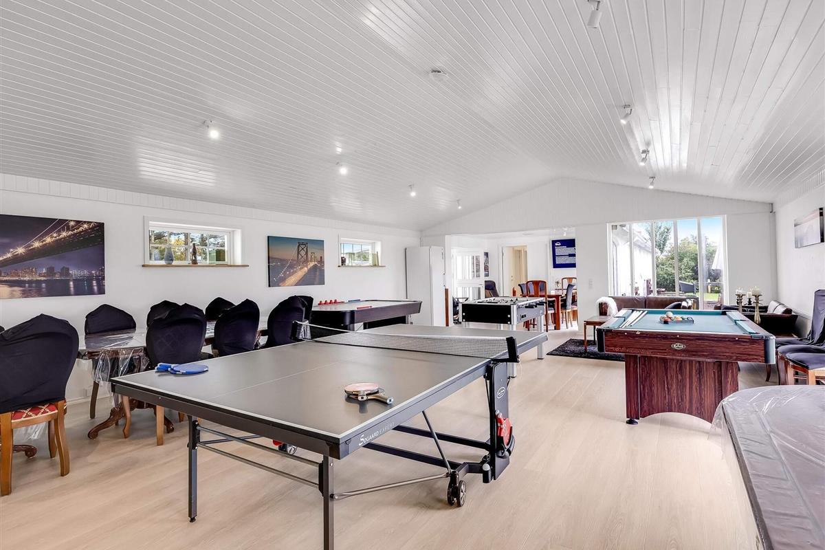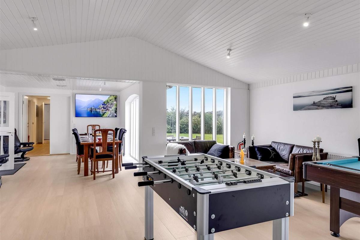 Aktivitetsrummet er et naturligt samlingspunkt, hvor du kan slå dig løs med TV, pool, fodboldbord, airhockey og bordtennis – så her er ingen risiko for at kede sig. Den store, aflukkede have er oplagt til leg og afslapning for både børn, voksne og hunde. Boligen er smukt placeret i åbent marklandskab med udsigt mod Rubjerg Knude Fyr mod nordvest og Børglum Kloster mod sydøst. Samtidig er der kort afstand i bil eller på cykel til både Løkken, Lønstrup, indkøbsmuligheder og Vesterhavet.