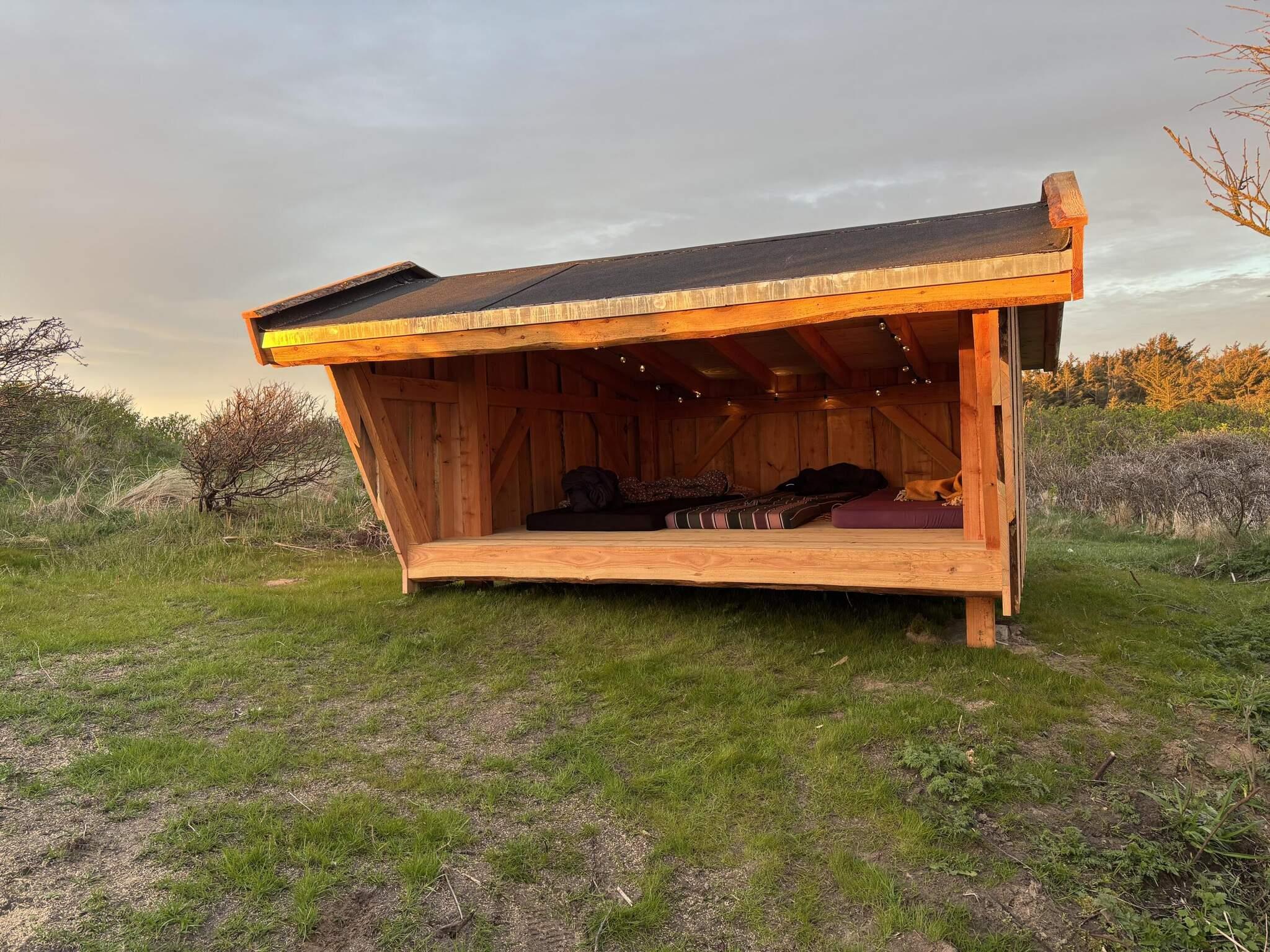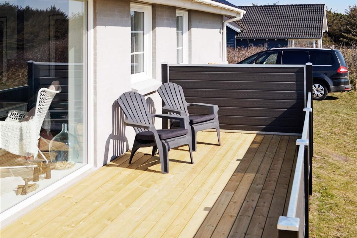 Omkring huset er der som nævnt dejlige terrasser og en udebruser og -spa samt havemøbler. Her er et skønt shelter, hvor det er super hyggeligt at overnatte. Huset ligger i et roligt område, hvor naturen er rå og dejlig! Vil du opleve mere leben, kan du blot tage et smut ned på stranden eller køre til enten Løkken eller Lønstrup, som er meget populære feriebyer på Danmarks nordvestkyst. Det er let at parkere ved huset, og du må også medbringe bilen på stranden.