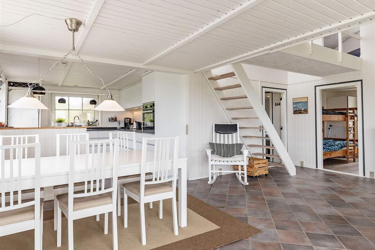 Skyttevej 4 ligger midt i naturskønne Nr. Lyngby, og her er plads til 8 personer! Huset har 4 soveværelser med 2 dobbeltsenge og 2 køjesenge - og hertil 2 ekstra sovepladser på den hyggelige hems. I huset er der 1 badeværelse og et kæmpe køkkenalrum i åben forbindelse med stuen, hvor der kan hygges i de bløde sofaer! Det er generelt et hus med masser af plads, der indbyder til en dejlig ferie - selv på husets første sal er der en skøn udsigtsstue! Husets store vinduespartier vidner også om, at man gerne inviterer den storslåede natur indenfor. Dele af huset er fra 1996, men en stor del er renoveret i 2022, hvilket ses på bl.a. det lækre køkken, det smukke badeværelse og den kæmpe terrasse med spa.