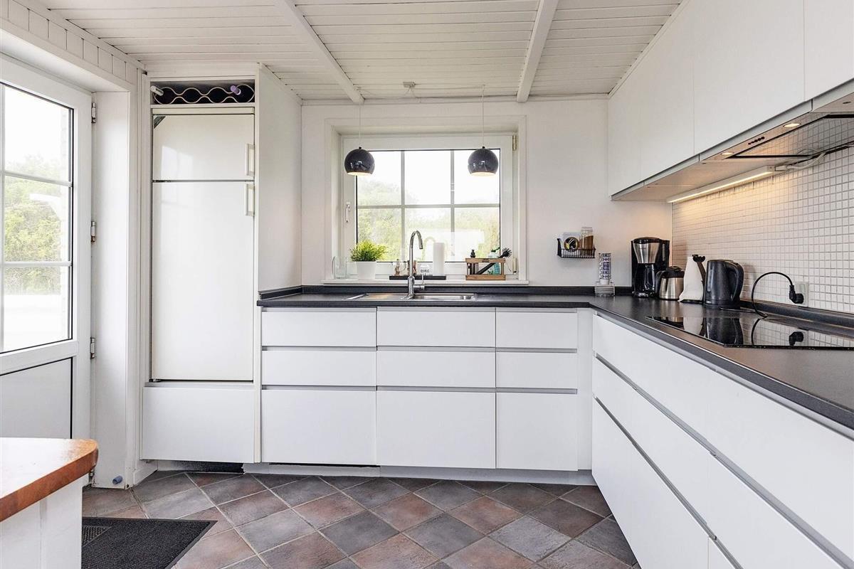 Køkken: El-komfur, elkogepl., køleskab, køle-frys, fryser 1 - 59 l, Miniovn, kaffemaskine, opvaskemask.