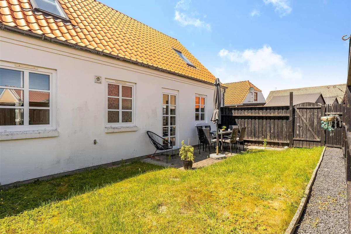 Ferieboligen er i super stand og ligger i gåafstand til strand, shopping, restaurationer, indkøbs- og transportmuligheder med mere. Der er 1 soverum og 1 badeværelse, og huset er praktisk indrettet med et rummeligt badeværelse og en lukket have. Her er plads til fire personer, og det er tilladt at medbringe husdyr. Rejser I 2 par sammen, er det oplagt at leje hhv. denne bolig samt lejligheden på 1. sal på samme adresse. Du har egen parkering netop foran boligen.