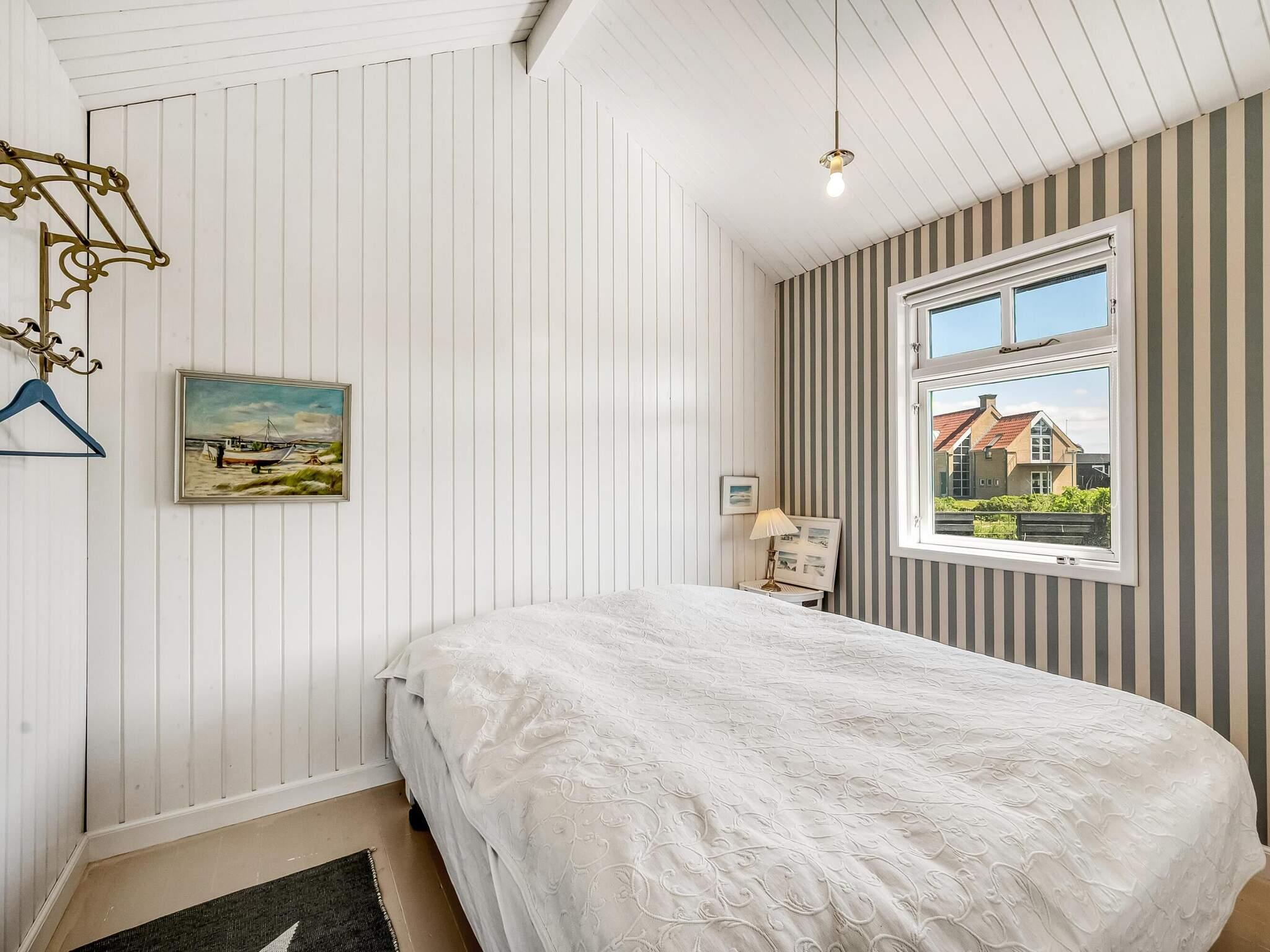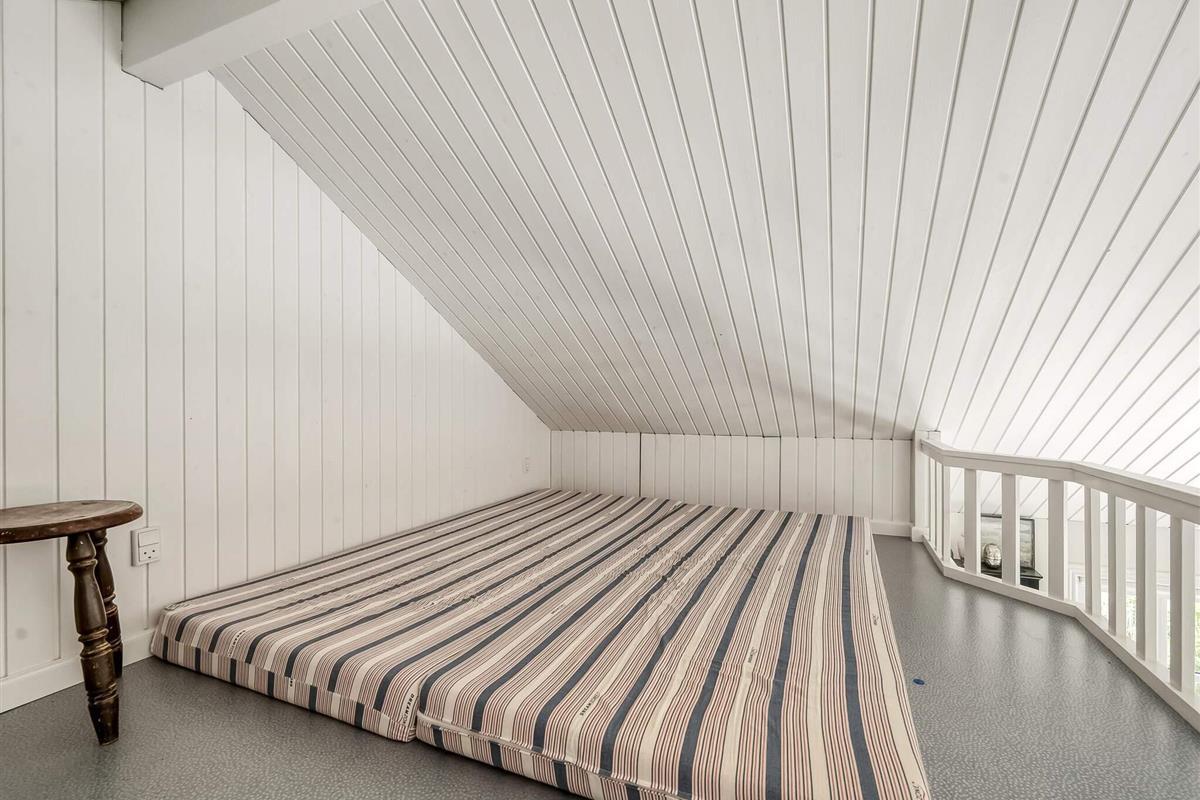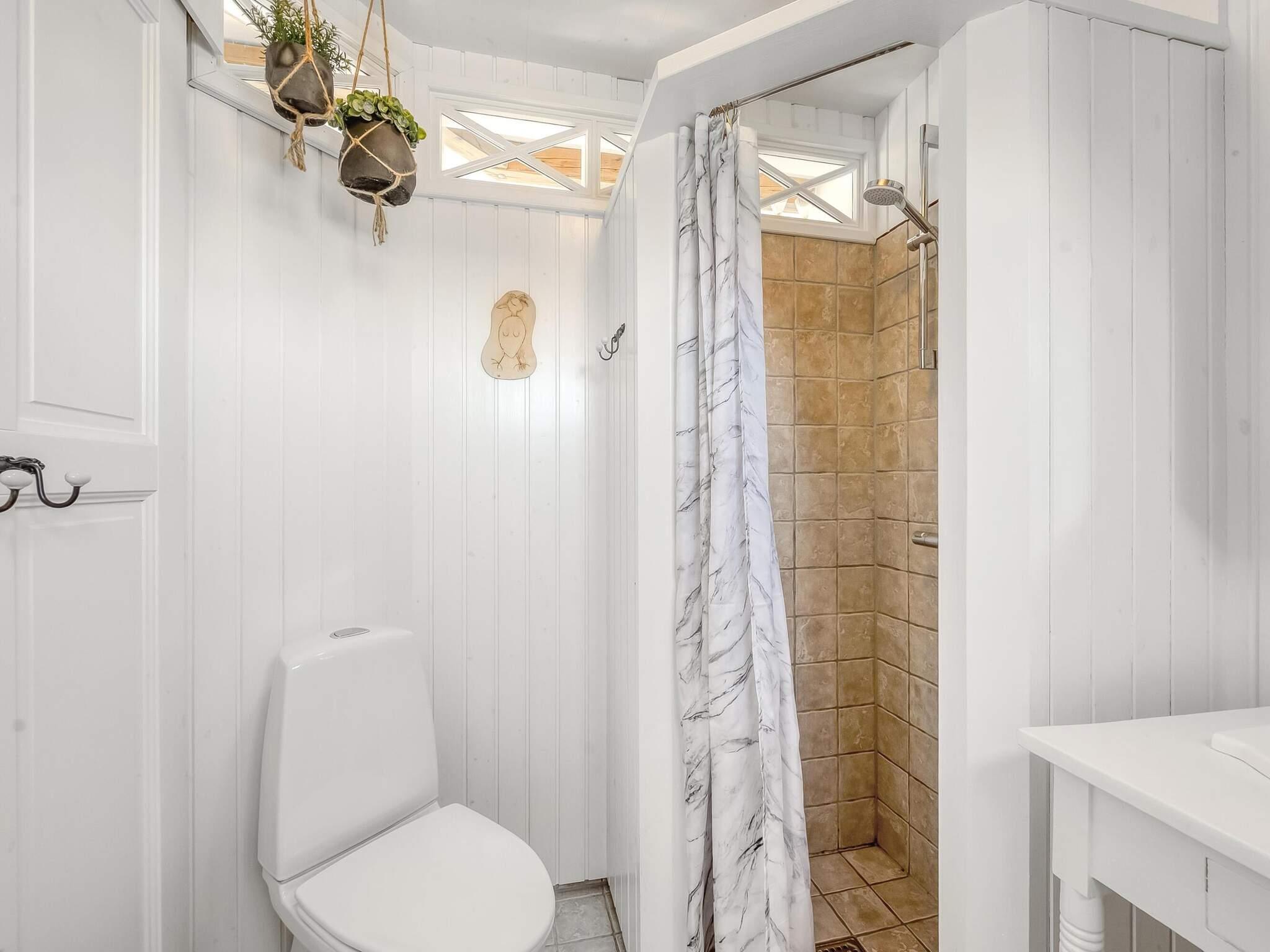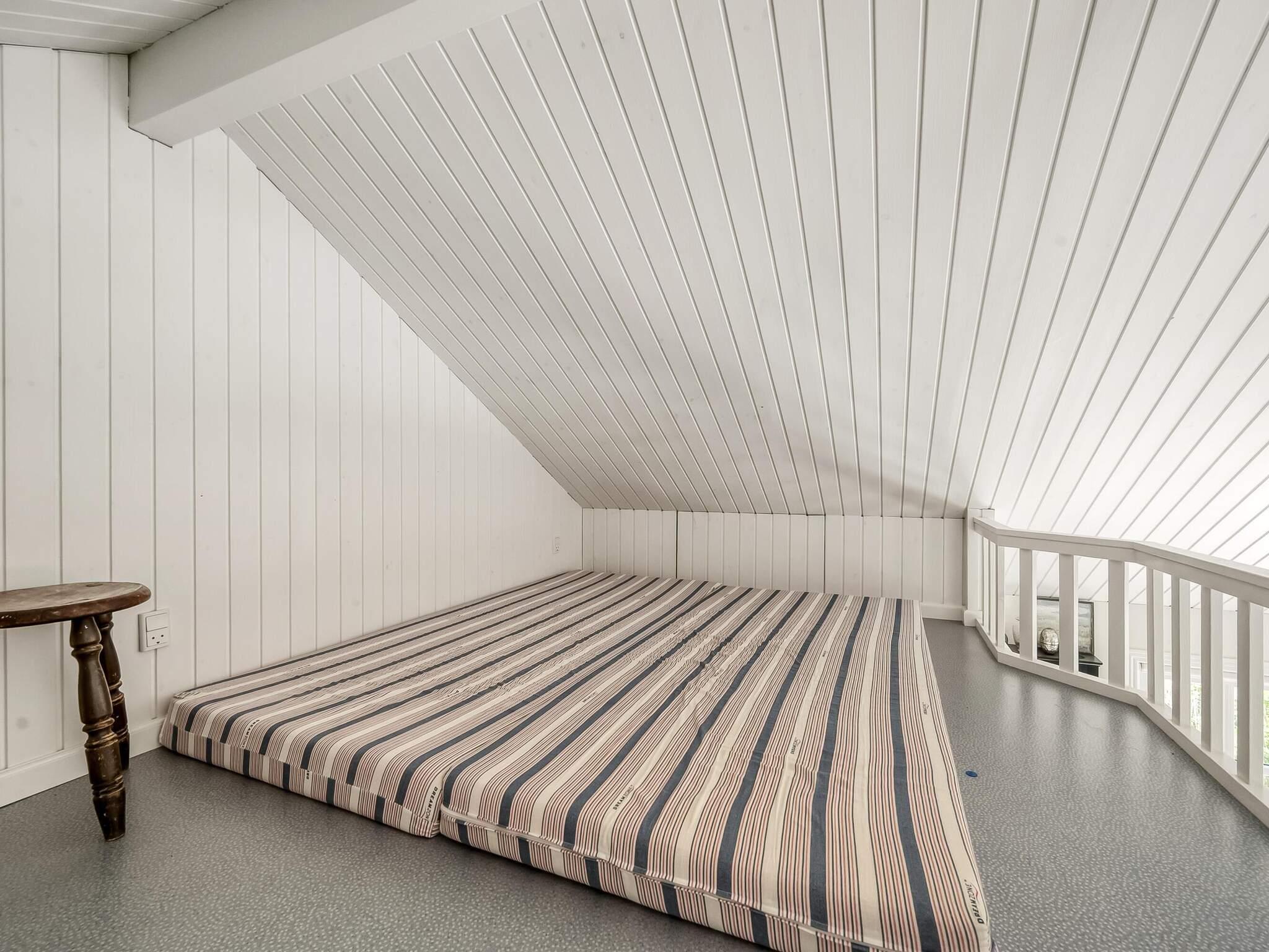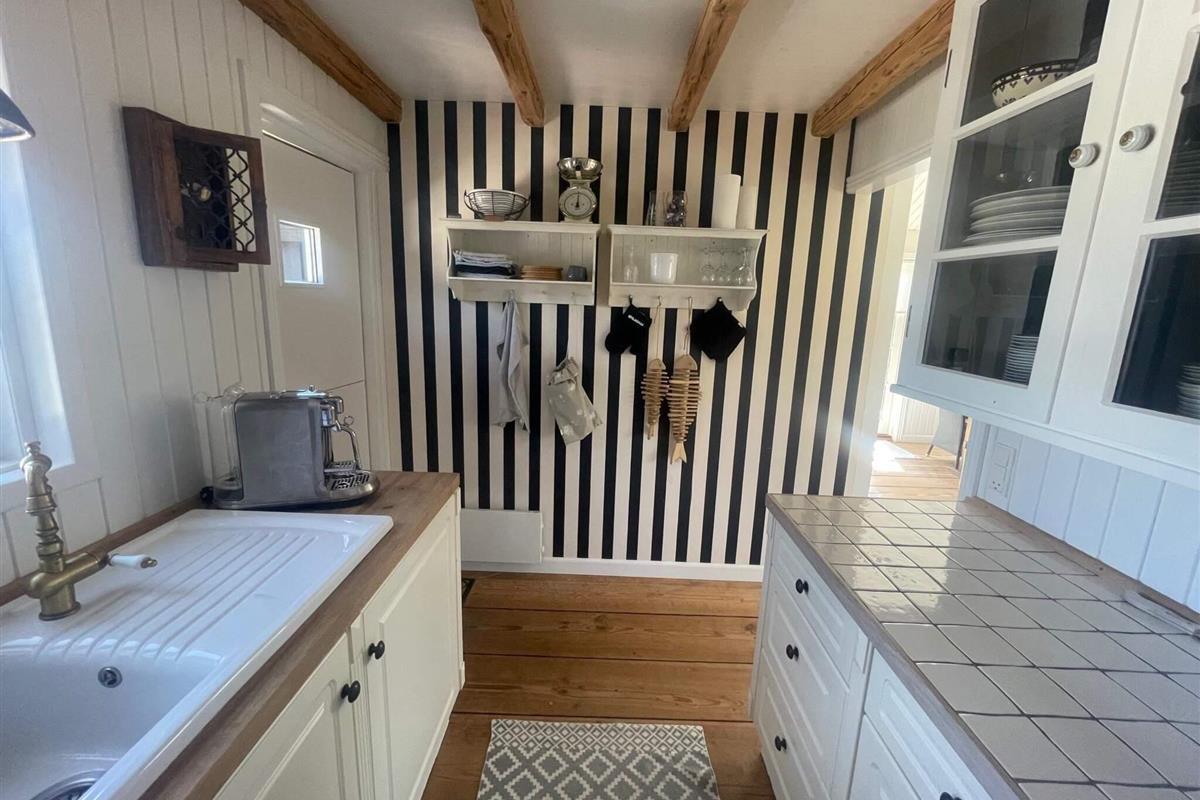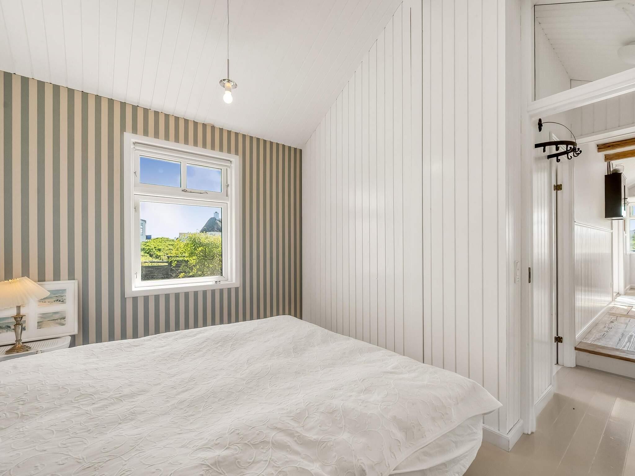 De to soveværelser og husets badeværelse ligger i forlængelse af spisestuen. Alle rum er dejlige og emmer af dansk sommerhusferie med en badehotelsstil, der er lys og indbydende.