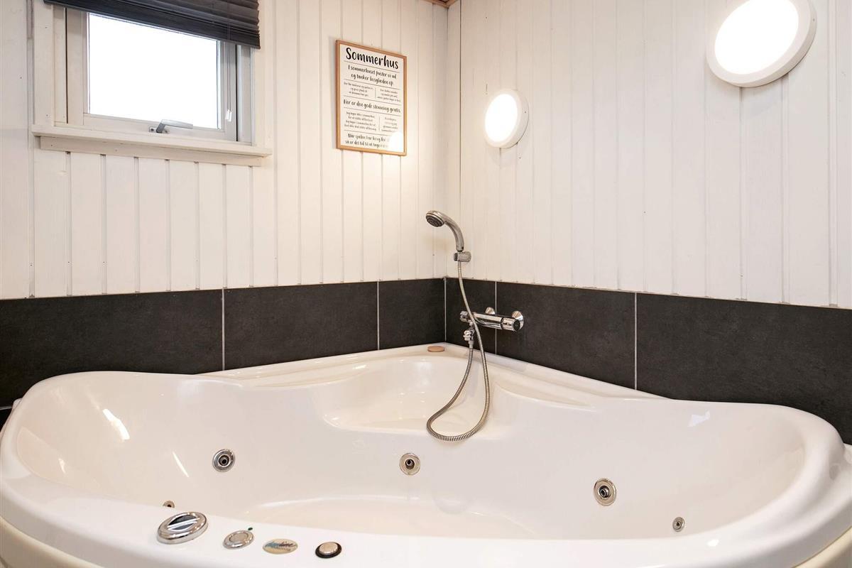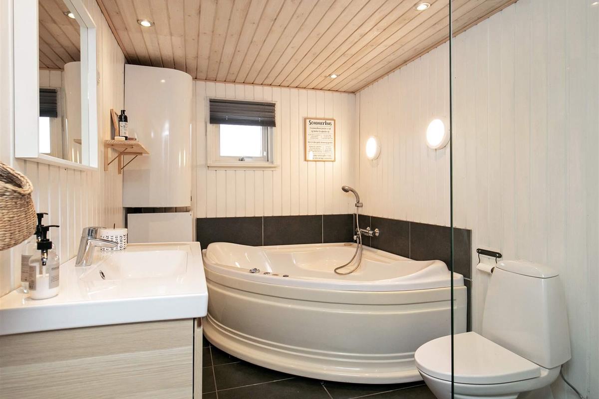 Bad mit Whirlpool und Dusche im Haus, das 1960 erbaut und 2016 umfassend renoviert und vergrößert wurde. Offener Küchen-/Essbereich und im Anschluss daran geräumiges Wohnzimmer. Außerdem stehen drei Schlafzimmer im Haus bereit. Separater Annex nebenan auf dem Grundstück mit vier Schlafplätzen, verteilt auf zwei Räume mit offener Verbindung, und eigenem Bad.