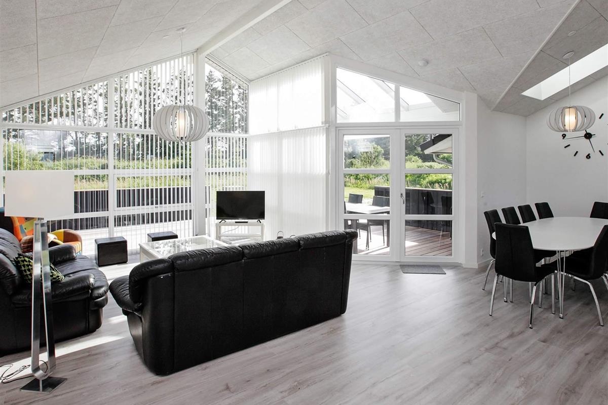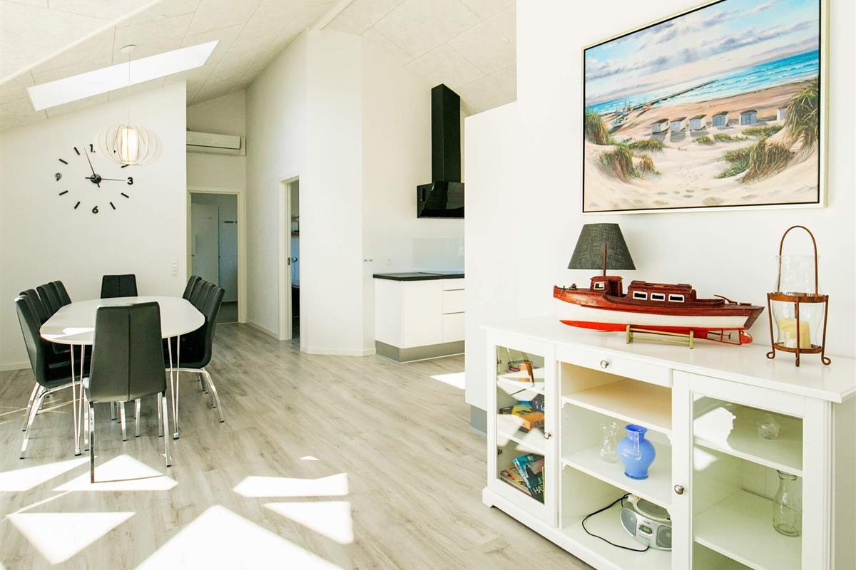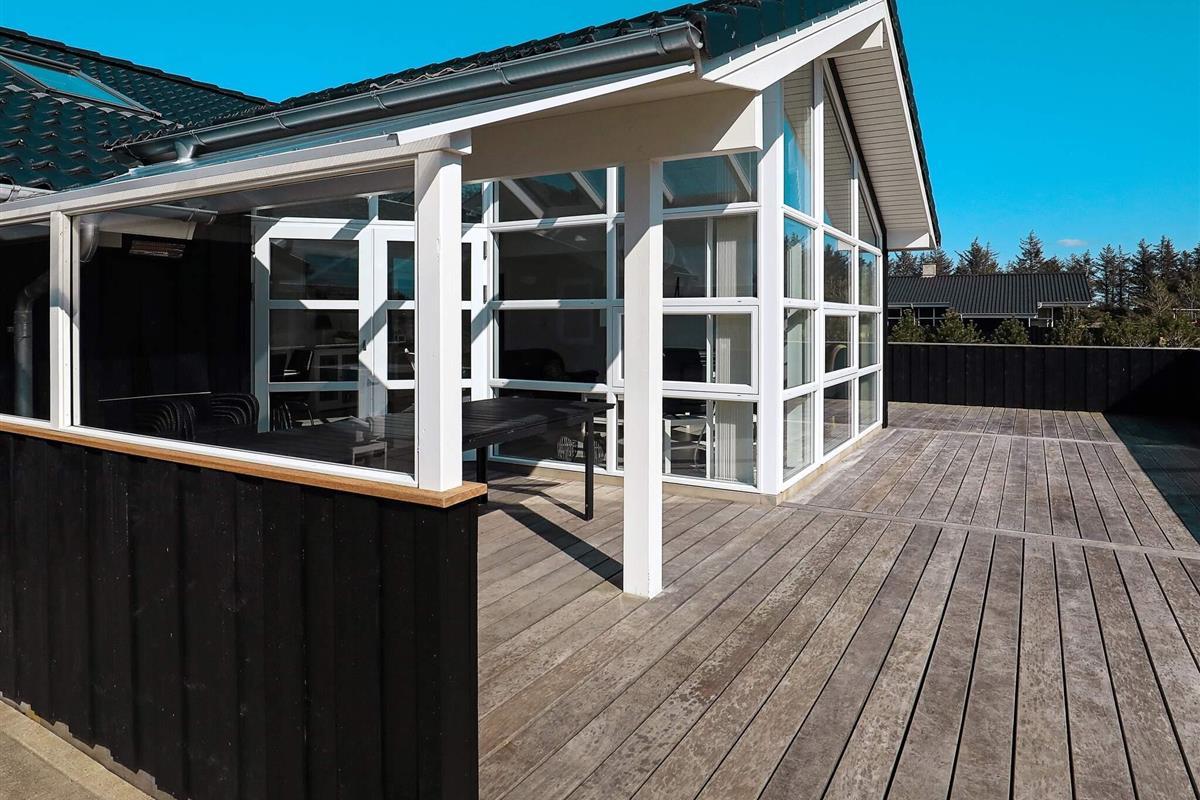 Von einem Architekten ganz individuell entworfenes Ferienhaus, mit Whirlpool für besonders erholsame Stunden. Liegt im attraktiven Ferienhausgebiet Løkken Syd, das Ortszentrum ist von hier aus zu Fuß erreichbar. Innen erwarten Sie ein offener Küchen-/Wohnbereich, vier Schlafzimmer und ein Hems sowie zwei Bäder, eines davon mit Whirlpool, zudem ein Hausflur mit Waschmaschine/Trockner. Die moderne Einrichtung ist in hellem, typisch skandinavischem Stil gestaltet, mit darauf abgestimmten Details. Der Lichteinfall ist optimal, das Ambiente wohnlich und ansprechend. Draußen gibt es eine große Terrassenfläche, 13 m² davon überdacht. Ein Teil dieser nach Südwesten ausgerichteten Fläche wurde verglast, um Windschutz zu bieten und dennoch die schöne Aussicht beizubehalten. Offenes, ebenes Naturgrundstück am Haus mit Schaukel und Sandkasten für Kinder. Im Haus umweltfreundliche, stromsparende Wärmepumpe, die auch Ihren Geldbeutel in Bezug auf die Abrechnung der Nebenkosten schont. Keine Vermietung an Jugendgruppen erwünscht!