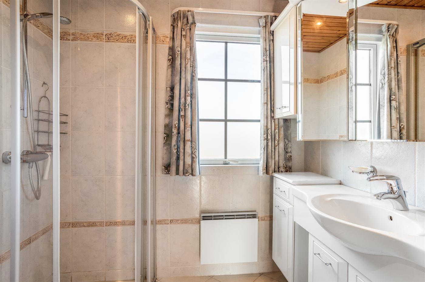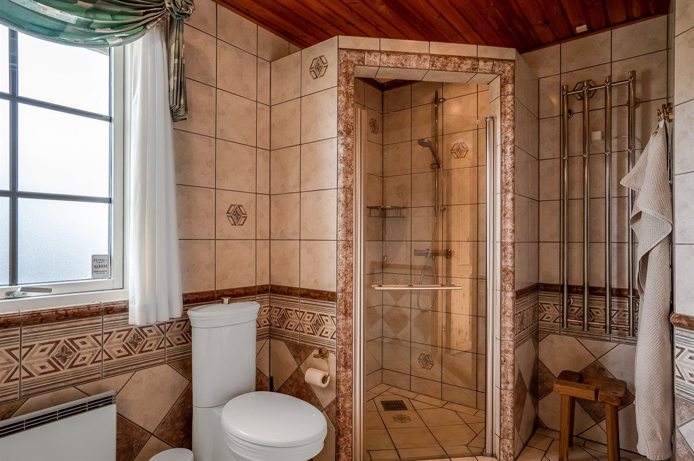 Er is 2 badkamers met douchehok en 2 toiletten. Er is vloerverwarming in 2 van de badkamers.