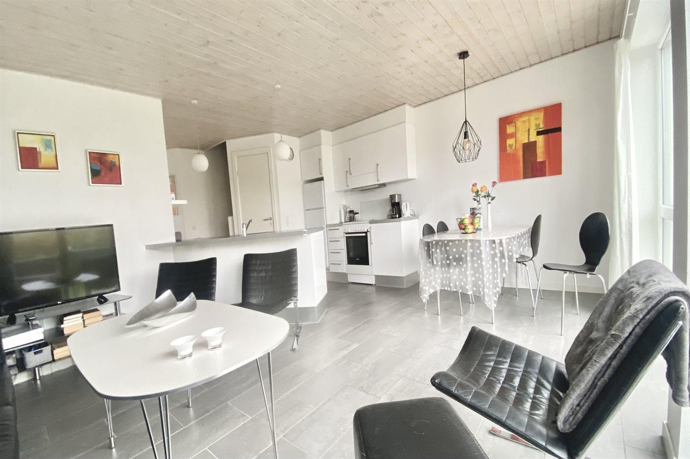 Ruim vakantieappartement in Løkken met sauna, bubbelbad en golfbaan dichtbij, ideaal voor ontspanning en natuur.