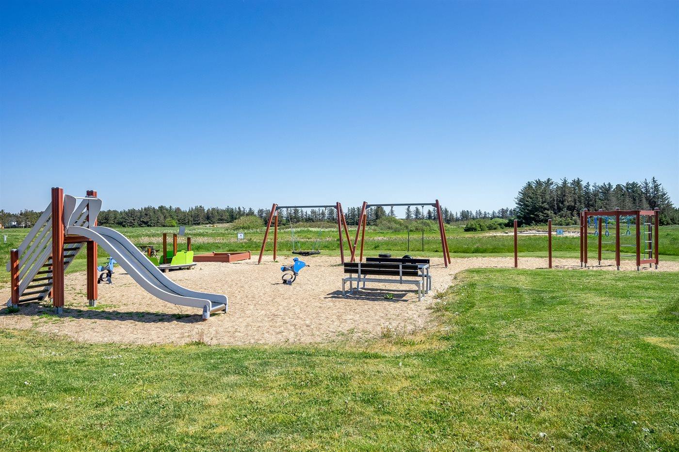 De vakantiewoning is gelegen op een 400 m² groot natuural grond. Afstand tot de zee 750 m. Dichtstbijzijnde winkel 750 m. Er is een golfbaan op een afstand van 100 m. Bij de vakantiewoning hoort 35 m² terras. Daarnaast is er een 5 m² groot overdekt terras. Parkeerplaats bij het huis.