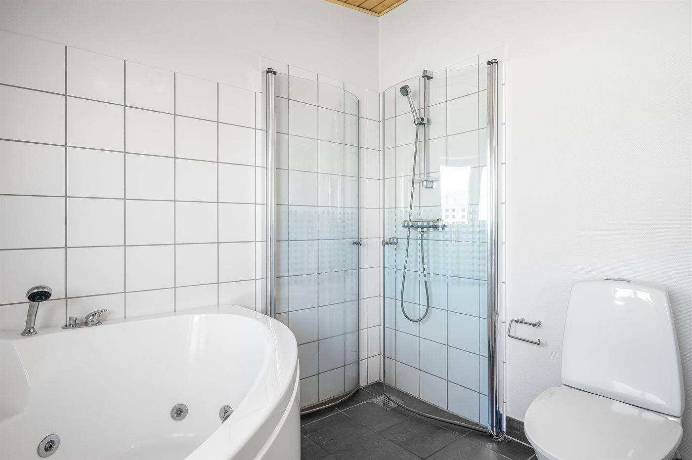 Er is 2 badkamers met douchehok en 2 toiletten. Er is vloerverwarming in 1 badkamer. De sauna biedt de gelegenheid tot ontspanning.