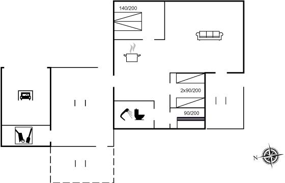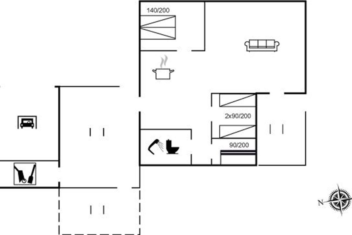 De vakantiewoning is gelegen op een 1200 m² groot natuural grond. Afstand tot de zee 300 m. Dichtstbijzijnde winkel 705 m. Bij de vakantiewoning hoort 30 m² terras. Gereedschapsruimte.