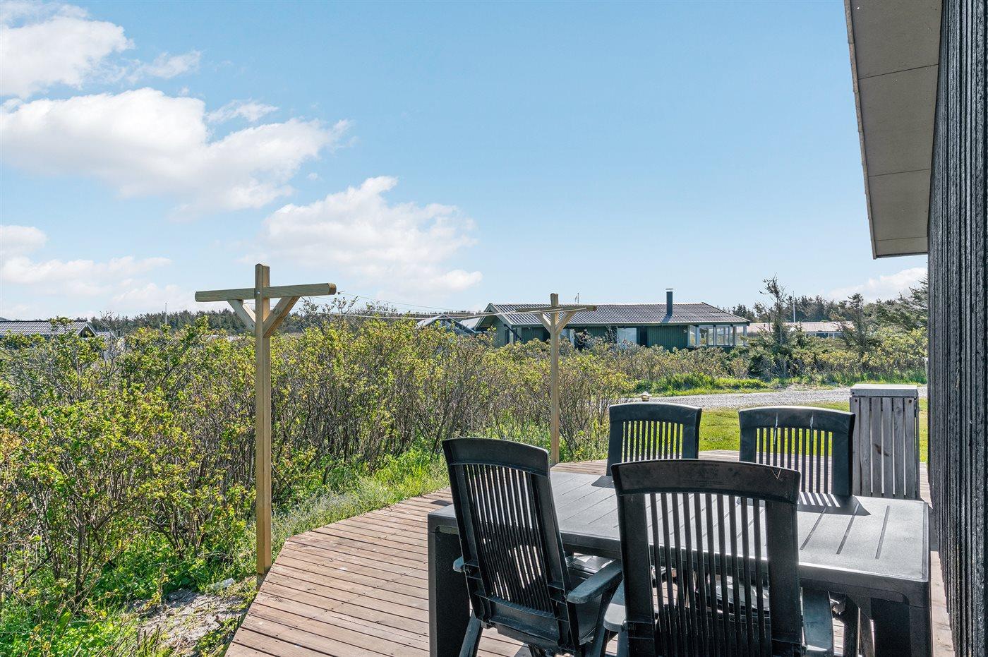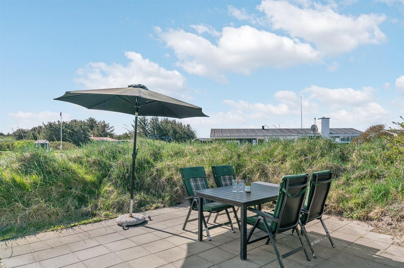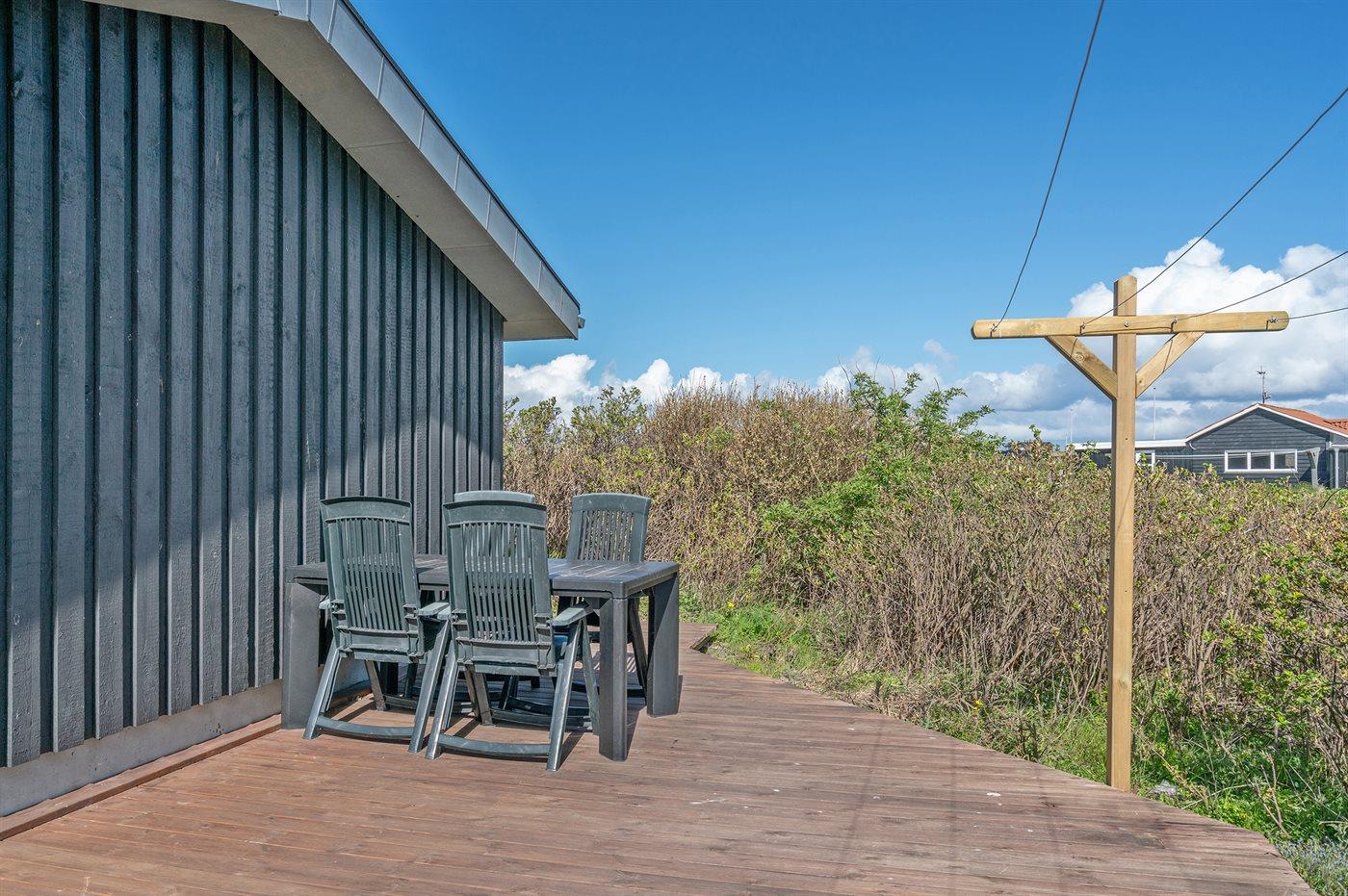 De vakantiewoning is gelegen op een 1935 m² groot natuural grond. Afstand tot de zee 400 m. Dichtstbijzijnde winkel 600 m. Bij de vakantiewoning hoort 60 m² terras. Daarnaast is er een 25 m² groot overdekt terras. Schommel. Zandbak. Buitendouche.