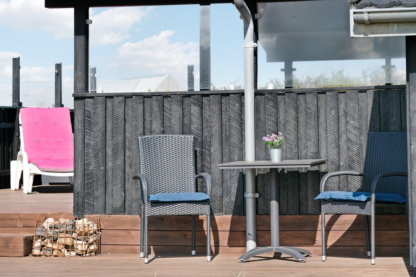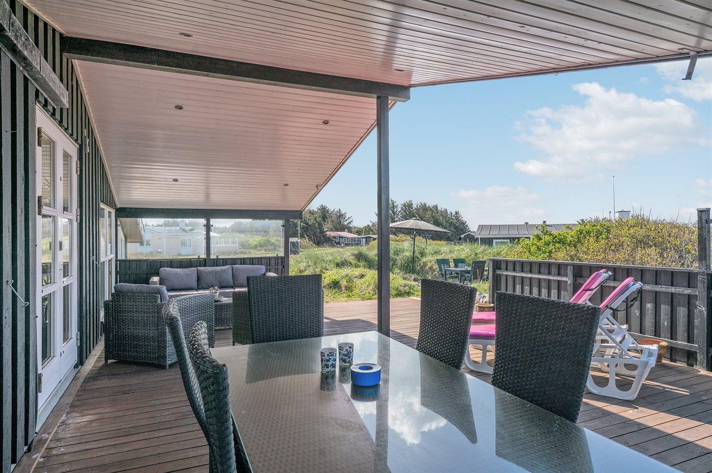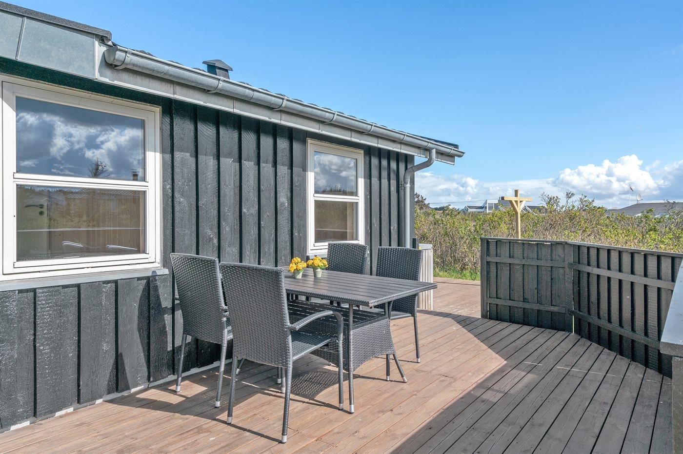 De vakantiewoning is gelegen op een 1935 m² groot natuural grond. Afstand tot de zee 400 m. Dichtstbijzijnde winkel 600 m. Bij de vakantiewoning hoort 60 m² terras. Daarnaast is er een 25 m² groot overdekt terras. Schommel. Zandbak. Buitendouche.