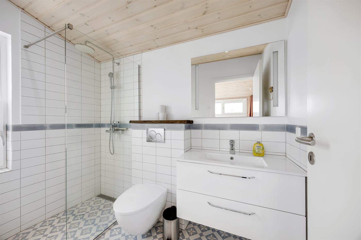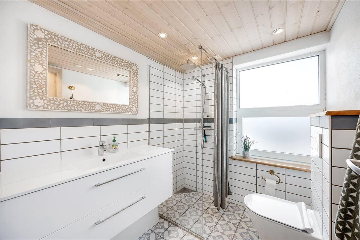 Er is 2 badkamers met douche en 2 toiletten. Er is vloerverwarming in 2 van de badkamers.