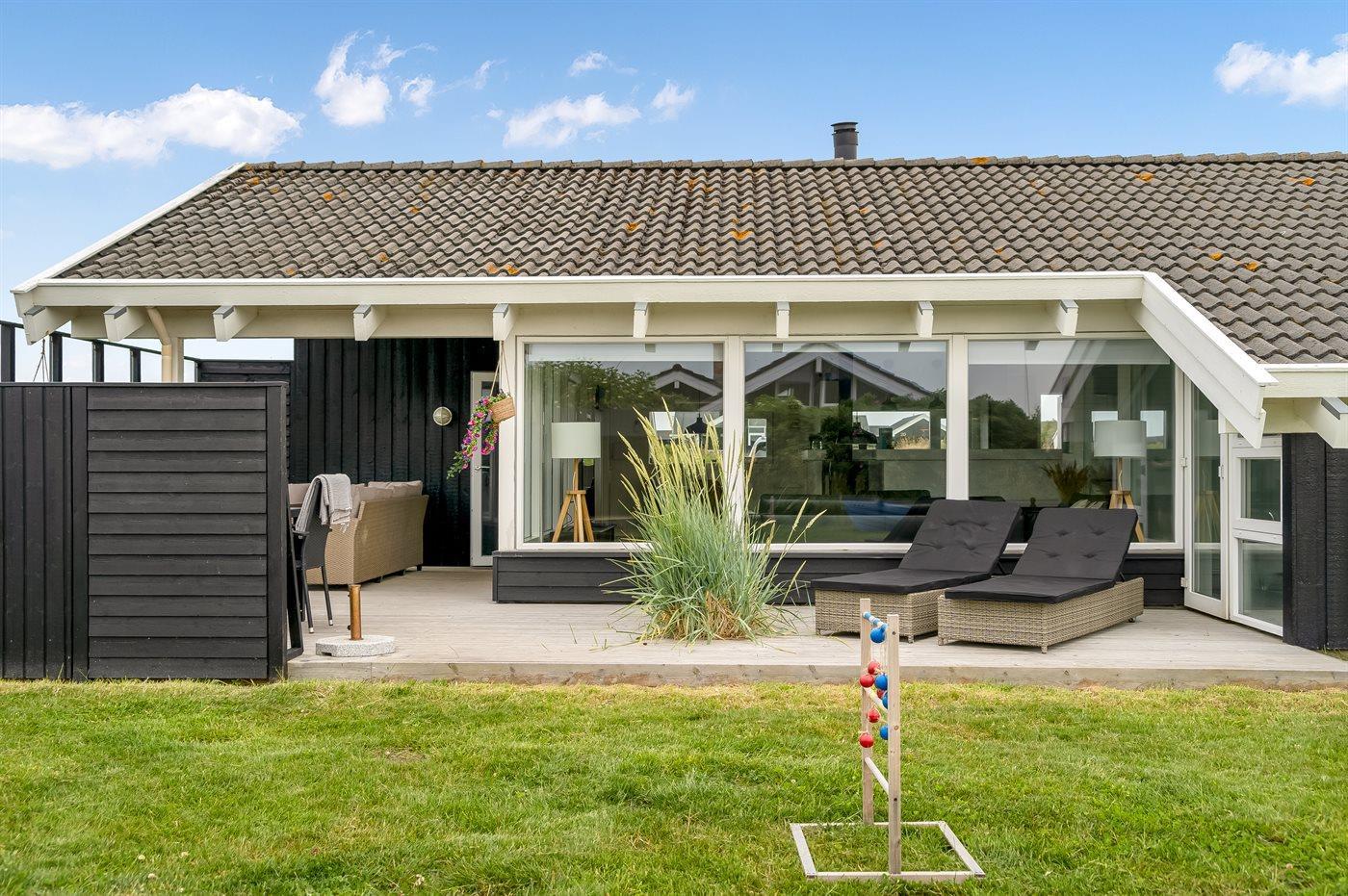 De vakantiewoning is gelegen op een 1230 m² groot natuural grond. Afstand tot de zee 500 m. Dichtstbijzijnde winkel 1500 m. Bij de vakantiewoning hoort 18 m² terras. Daarnaast is er een 8 m² groot overdekt terras. Schommel. Zandbak. Shelter. Gasbarbecue ter beschikking. Parkeerplaats bij het huis.