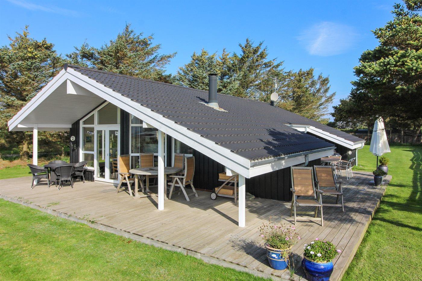 De vakantiewoning is gelegen op een 800 m² groot natuural grond. Afstand tot de zee 400 m. Dichtstbijzijnde winkel 400 m. Bij de vakantiewoning hoort 12 m² terras. Daarnaast is er een 16 m² groot overdekt terras.