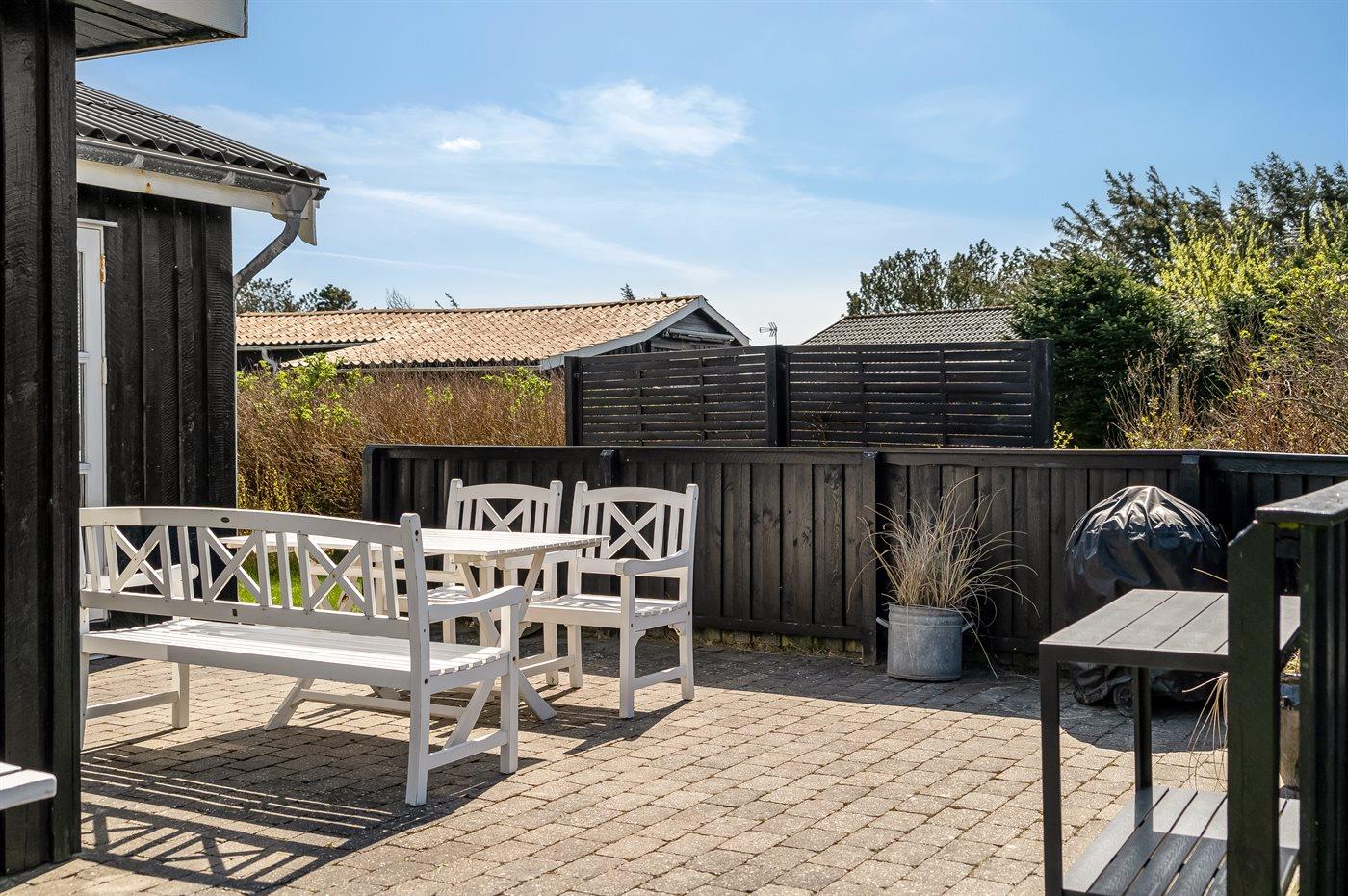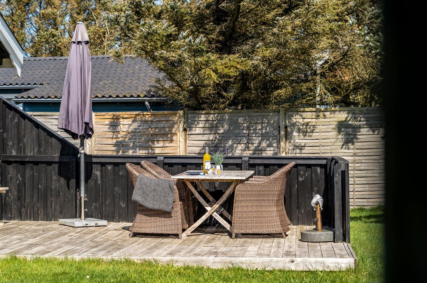 De vakantiewoning is gelegen op een 755 m² groot natuural grond. De grond is omheind. Afstand tot de zee 350 m. Dichtstbijzijnde winkel 700 m. Bij de vakantiewoning hoort 62 m² terras. Daarnaast is er een 15 m² groot overdekt terras. Gereedschapsruimte. Buitendouche. Parkeerplaats bij het huis.