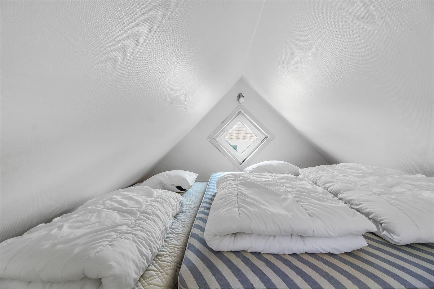 Er zijn in totaal 1 slaapkamer. De slaapplaatsen zijn als volgt verdeeld: 2 slaapplaatsen in tweepersoonsbed.2 slaapplaatsen op matrassen. 2 van deze slaapplaatsen bevinden zich in de open slaapzolder.