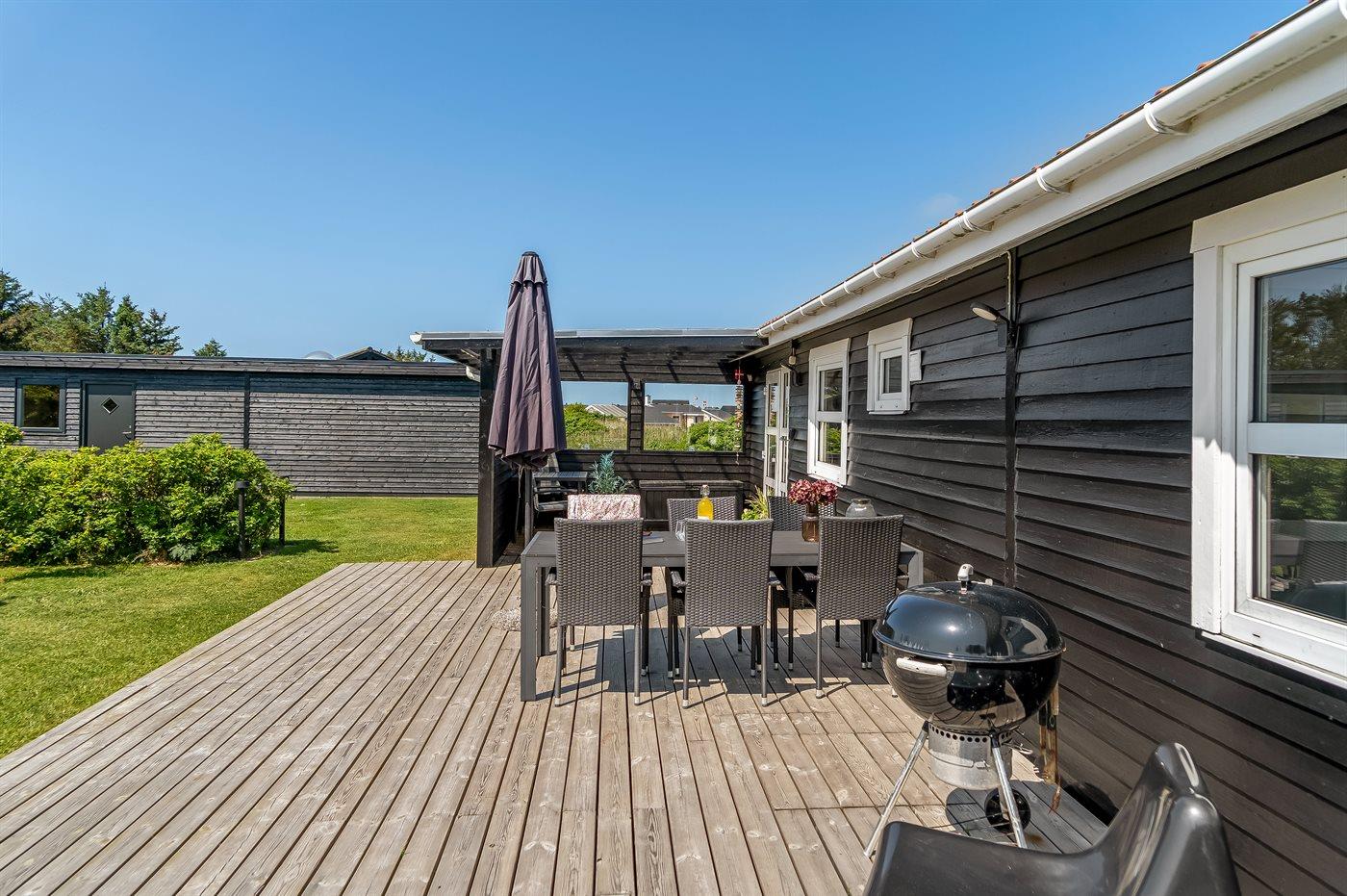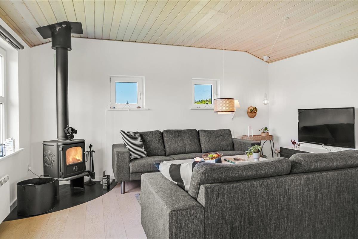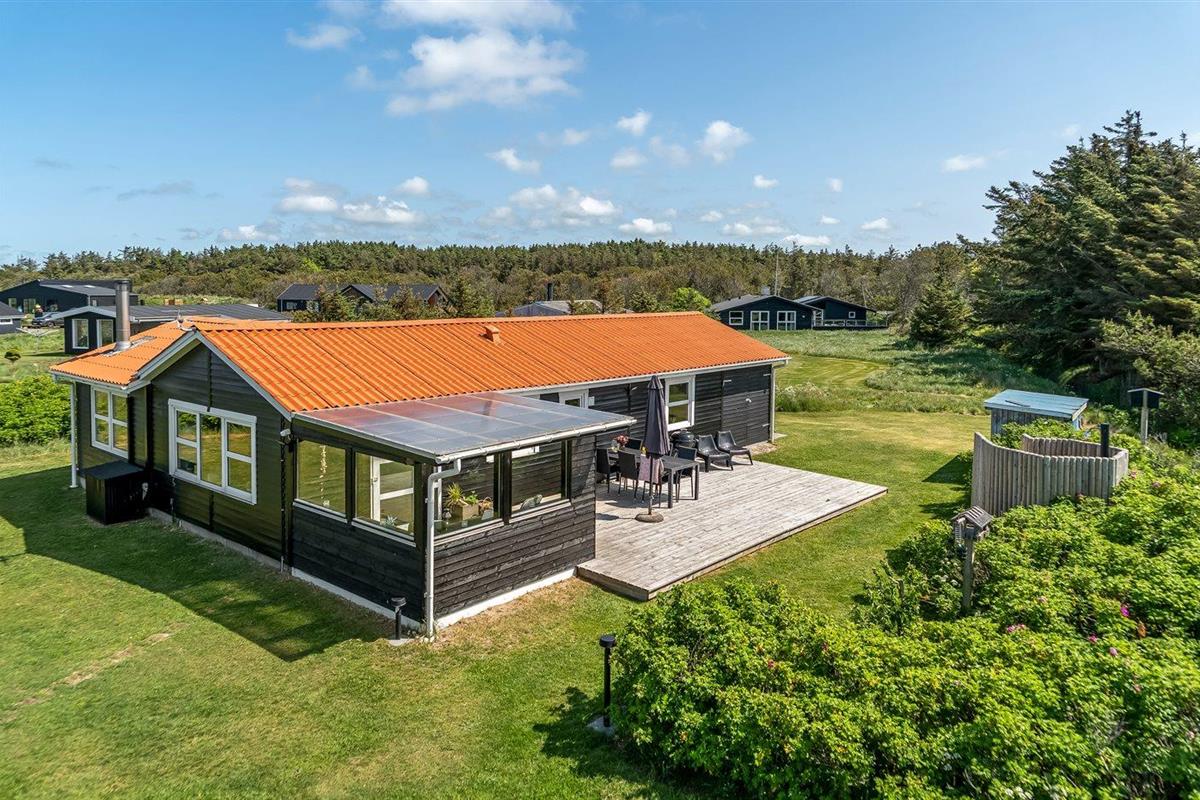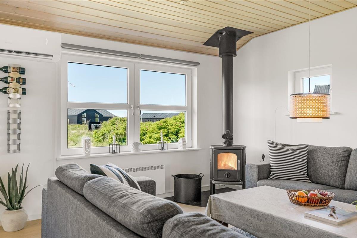 Comfortabel vakantiehuis nabij zee met terras, houtkachel, en moderne voorzieningen in Løkken, Denemarken.