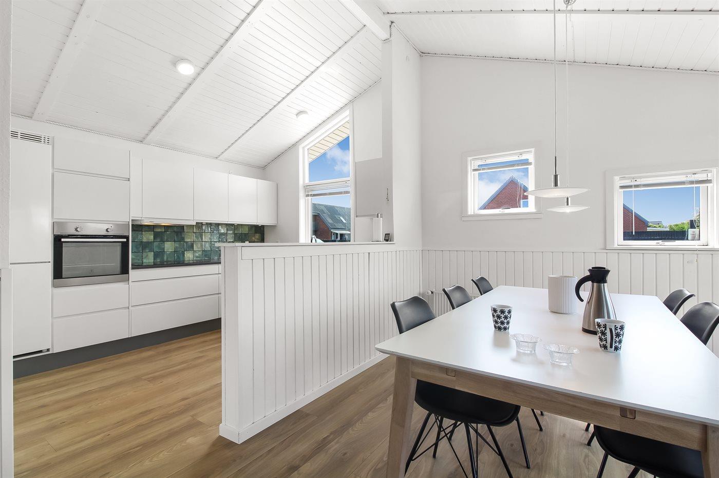 De keuken is uitgerust met koelkast Er is 4 inductiekookplaten, heteluchtoven, magnetron en vaatwasser.