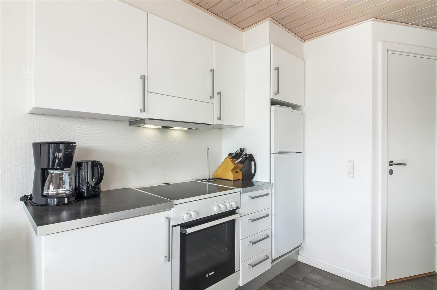 De keuken is uitgerust met koelkast Er zijn 4 keramische kookplaten, heteluchtoven, magnetron en vaatwasser.