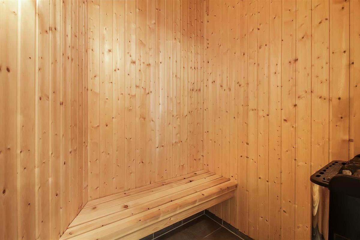 Er is 2 badkamers met douchehok en 2 toiletten. Er is vloerverwarming in 2 van de badkamers. De sauna biedt de gelegenheid tot ontspanning.