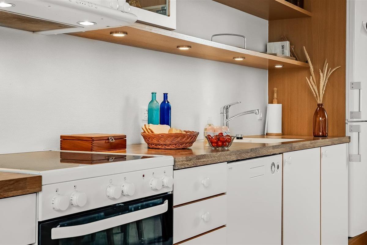 De keuken is uitgerust met koelkast Er zijn 4 keramische kookplaten, heteluchtoven, magnetron en vaatwasser. Vloerverwarming in de keuken.