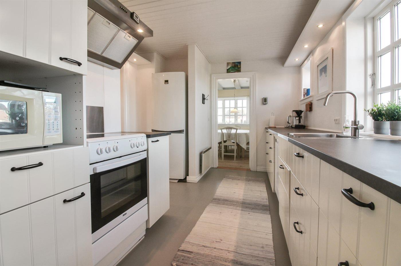 De keuken is uitgerust met koelkast Er zijn 4 keramische kookplaten, heteluchtoven, magnetron en vaatwasser.
