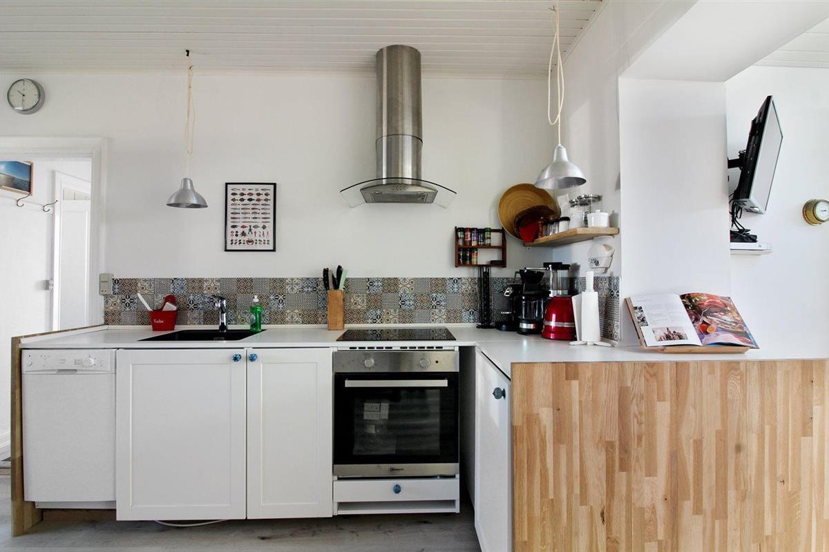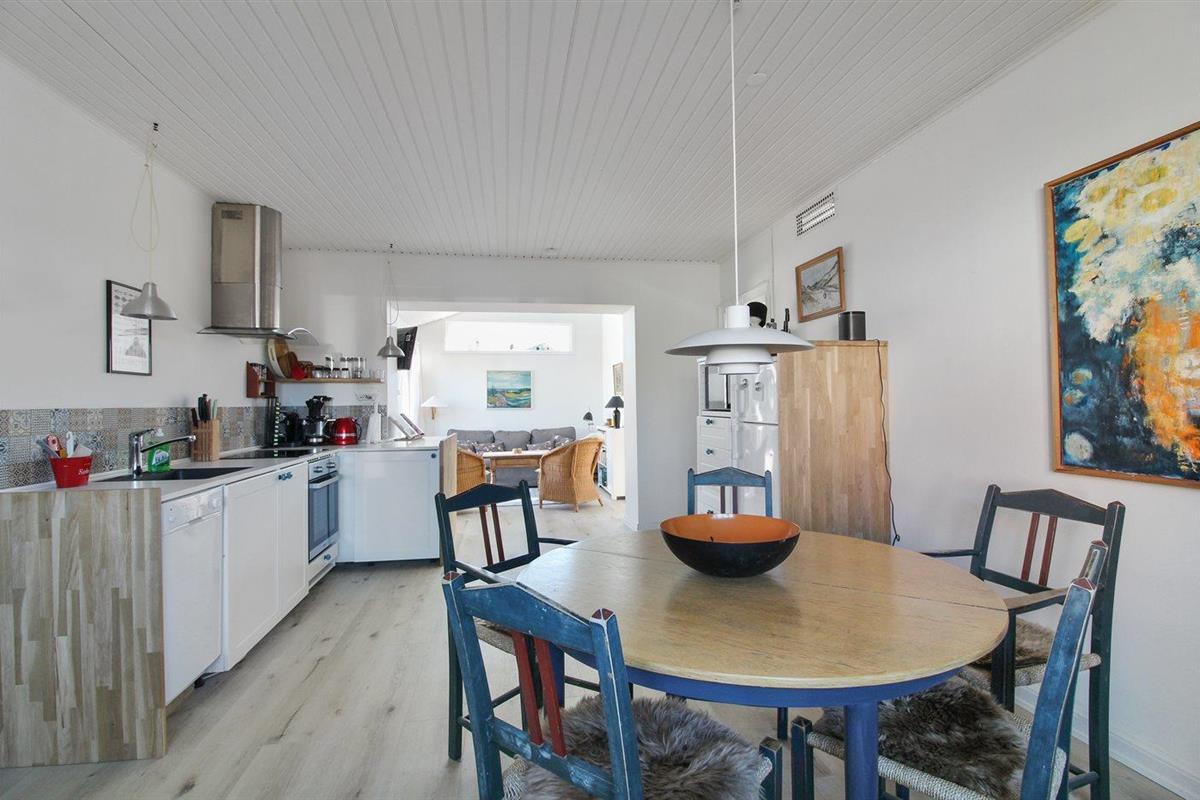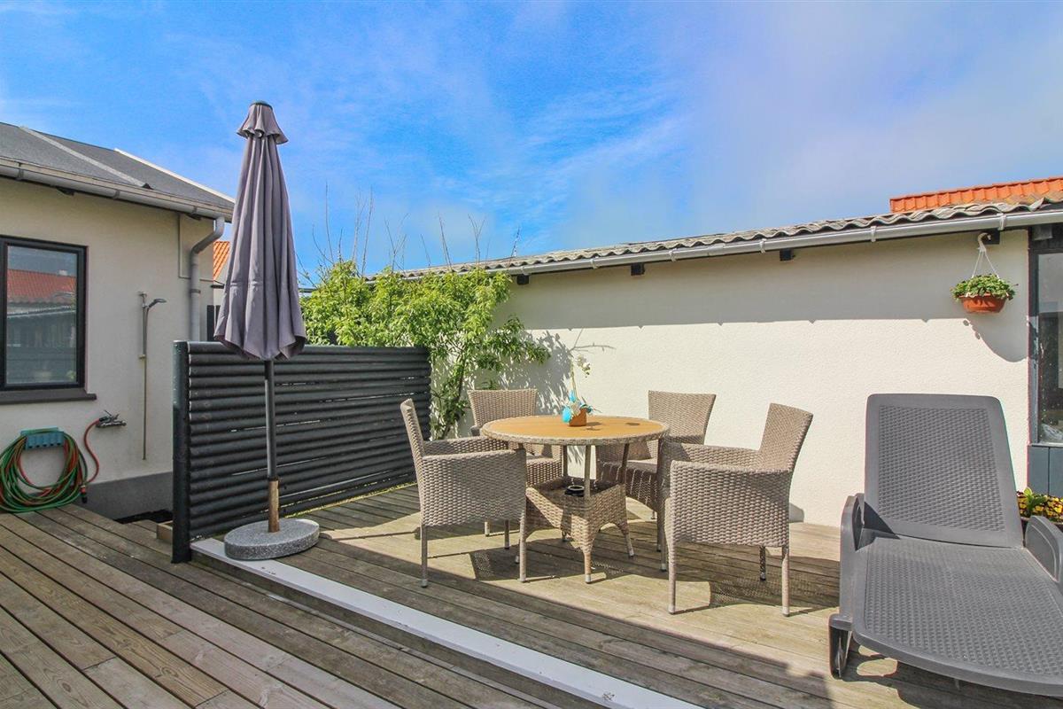Knus vakantiehuis nabij zee in Løkken met terras, houtkachel en omheind terrein voor een ontspannen verblijf.
