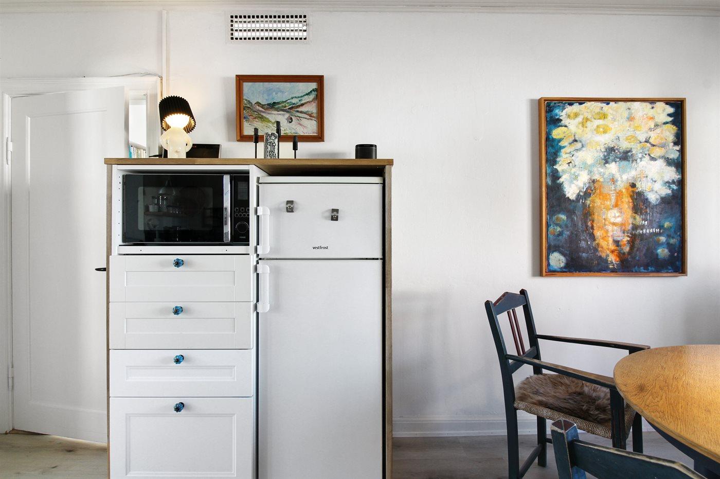 De keuken is uitgerust met koelkast Er is 4 inductiekookplaten, heteluchtoven, magnetron en vaatwasser.