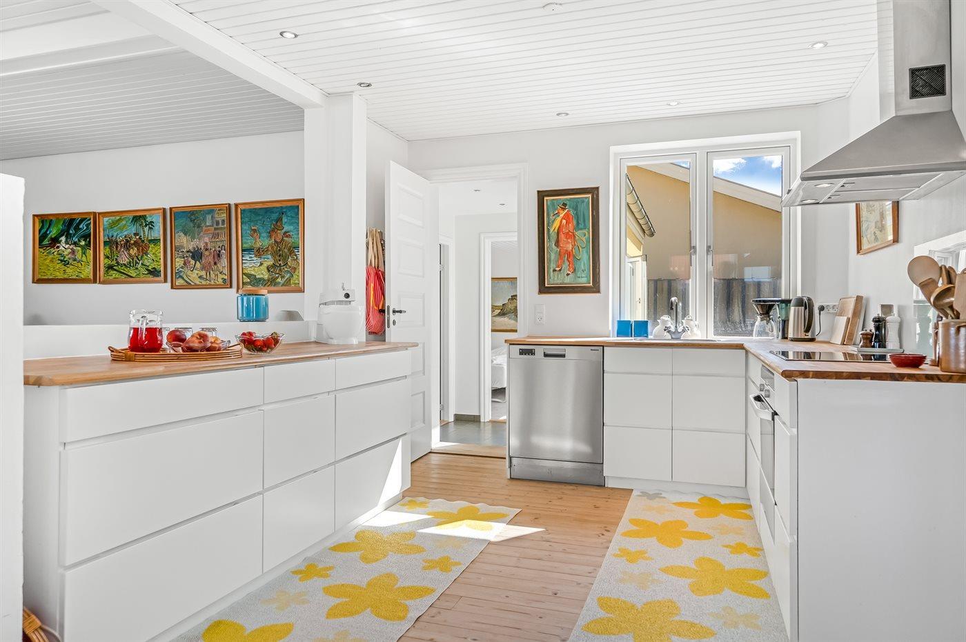 De keuken is uitgerust met koelkast Er is 4 inductiekookplaten, heteluchtoven, magnetron en vaatwasser.