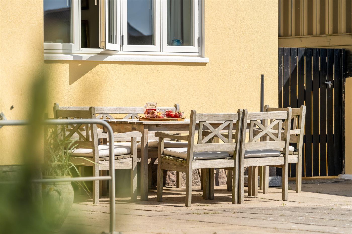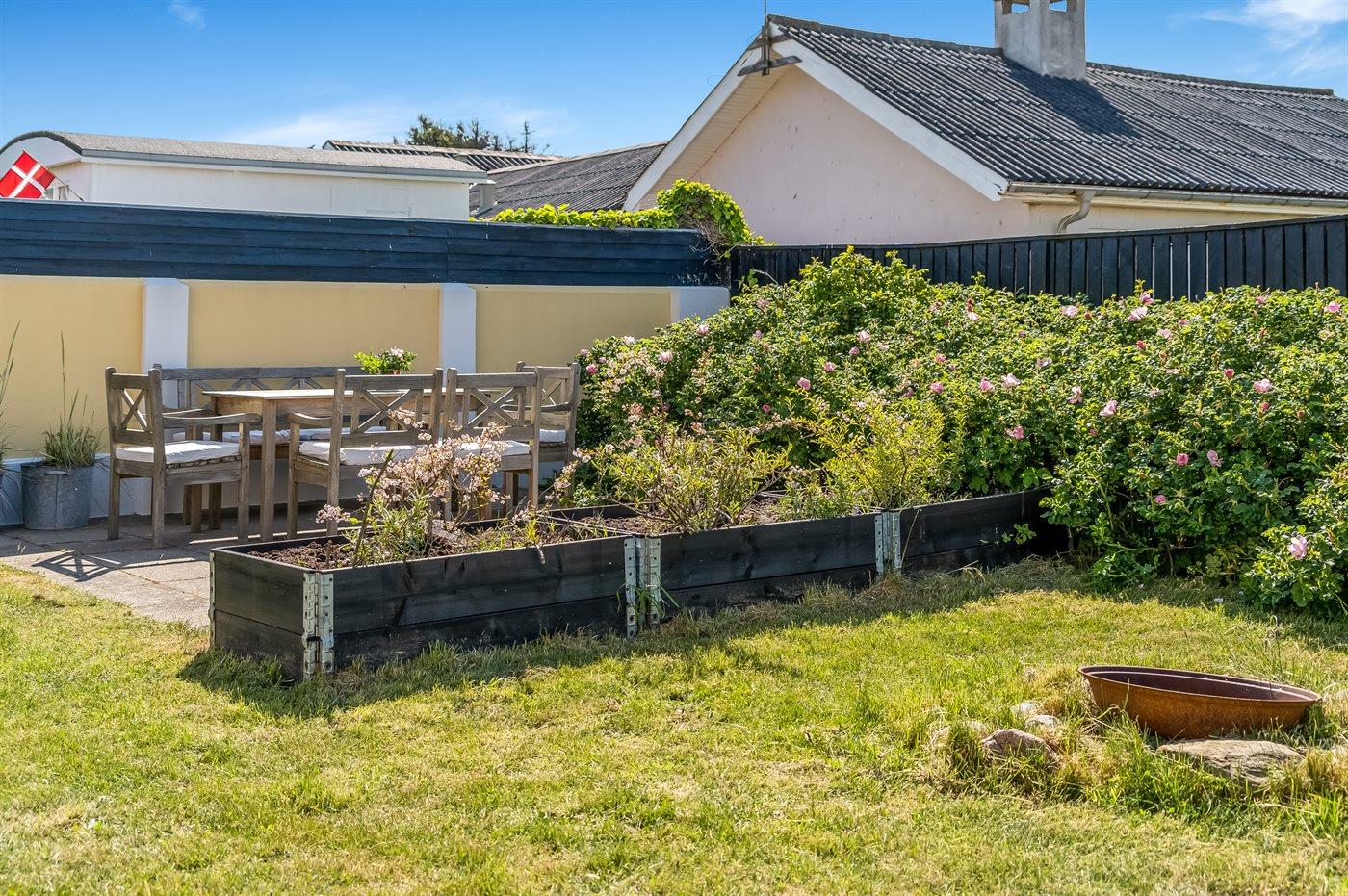 De vakantiewoning is gelegen op een 463 m² groot aangelegde tuin. De grond is omheind. Afstand tot de zee 125 m. Dichtstbijzijnde winkel 475 m. Bij de vakantiewoning hoort 16 m² terras. Het huis heeft een stopcontact voor het opladen van een elektrische auto.