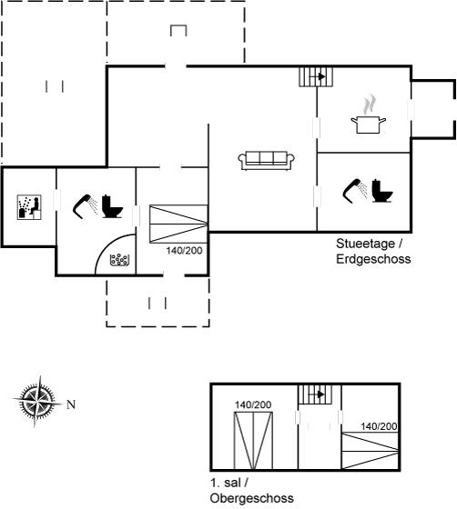 Er is 2 badkamers met douchehok en 2 toiletten. Er is vloerverwarming in 2 van de badkamers. De sauna biedt de gelegenheid tot ontspanning.