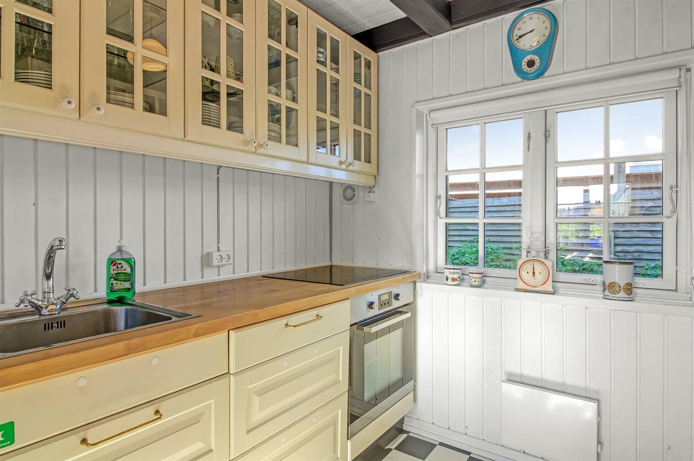 De keuken is uitgerust met koelkast Er is 4 inductiekookplaten, heteluchtoven en vaatwasser.
