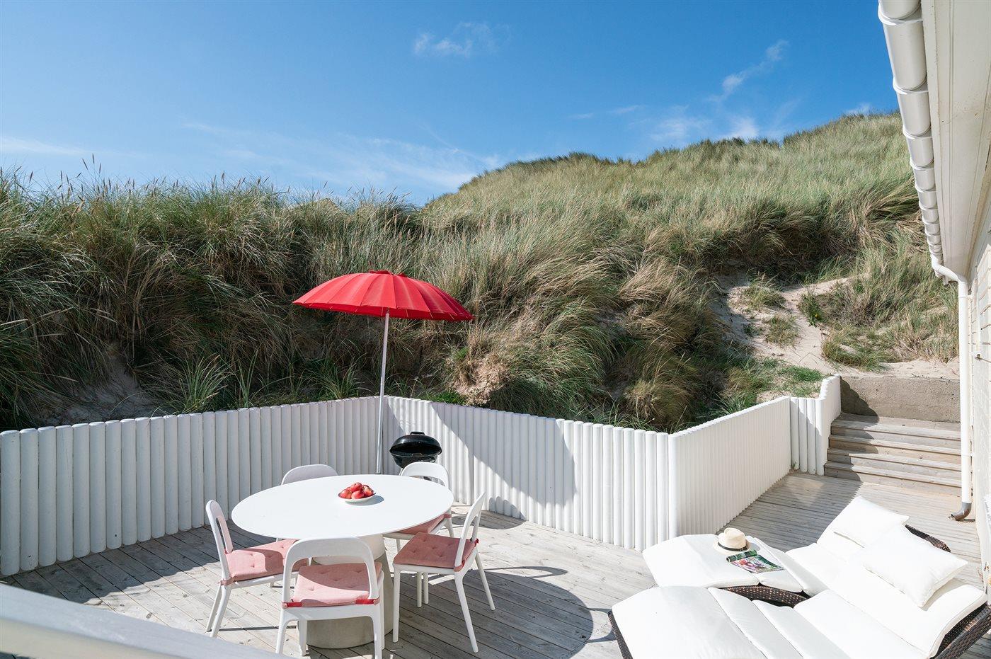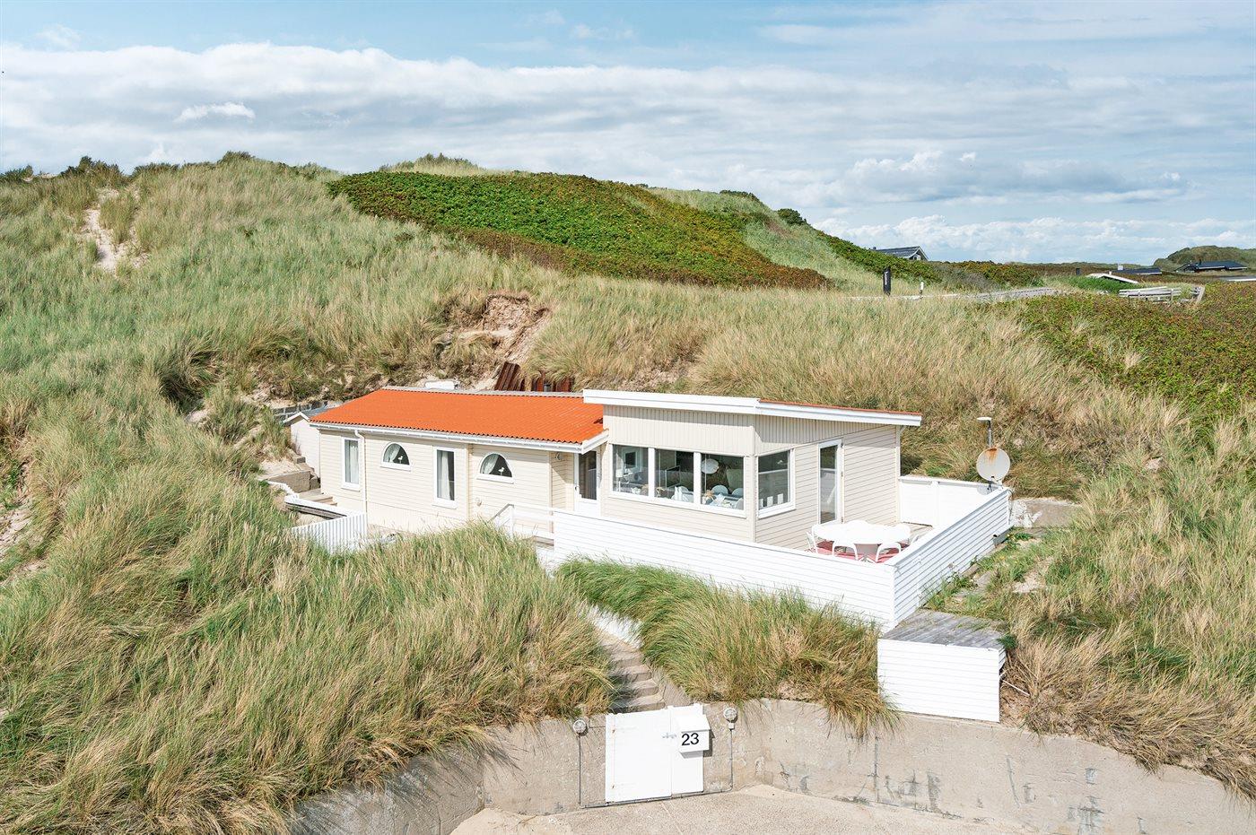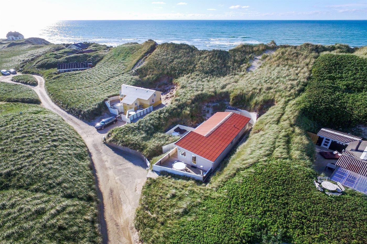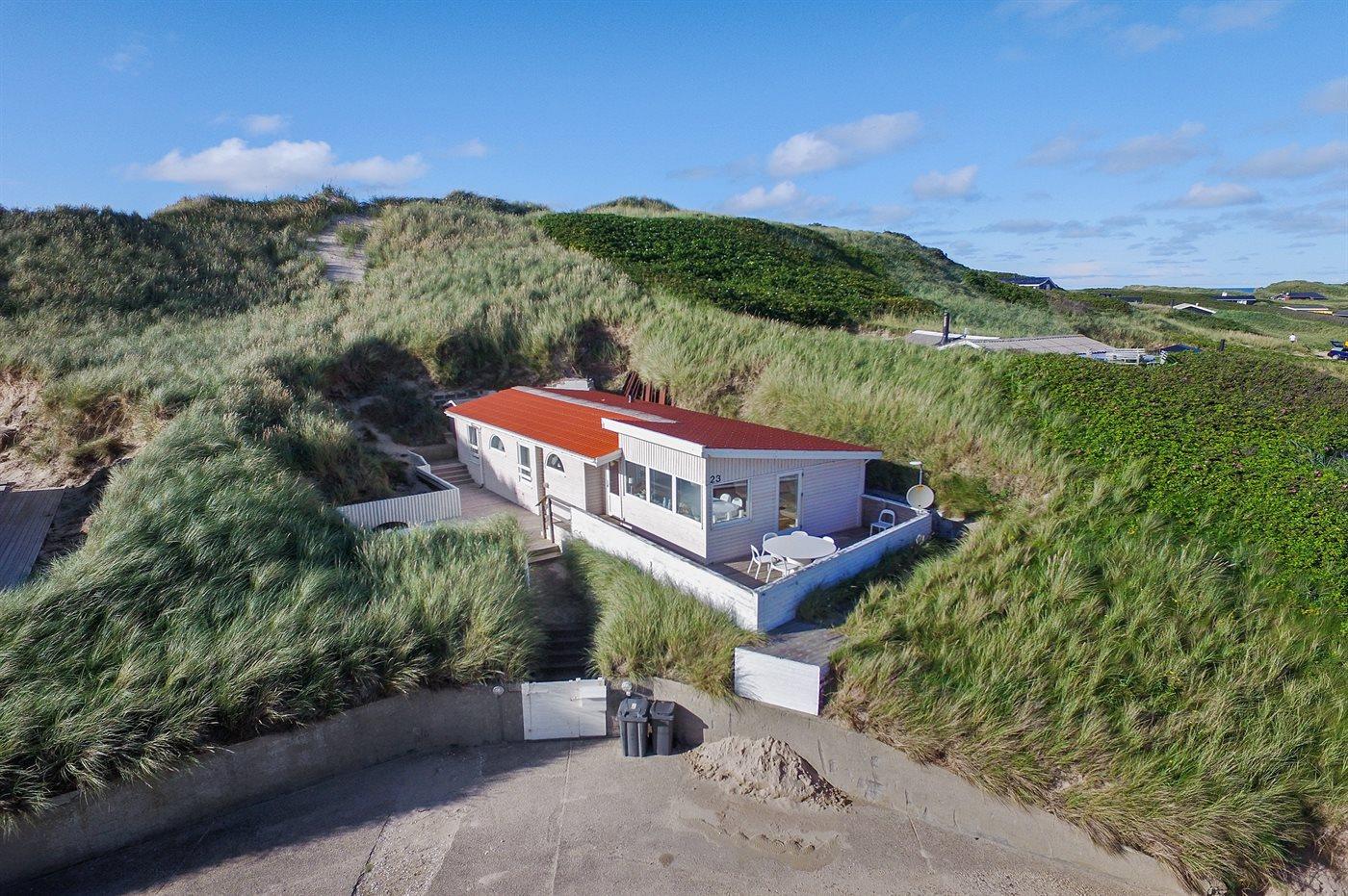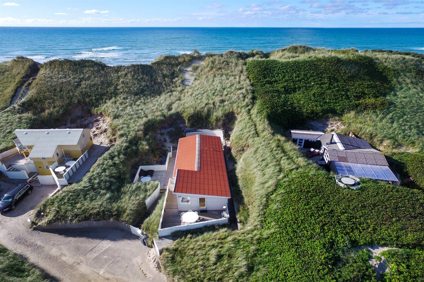 De vakantiewoning is gelegen op een 1782 m² groot Duingrond. Afstand tot de zee 100 m. Dichtstbijzijnde winkel 1000 m. Er is een golfbaan op een afstand van 3000 m. Bij de vakantiewoning hoort 50 m² terras. Gereedschapsruimte. Parkeerplaats bij het huis.