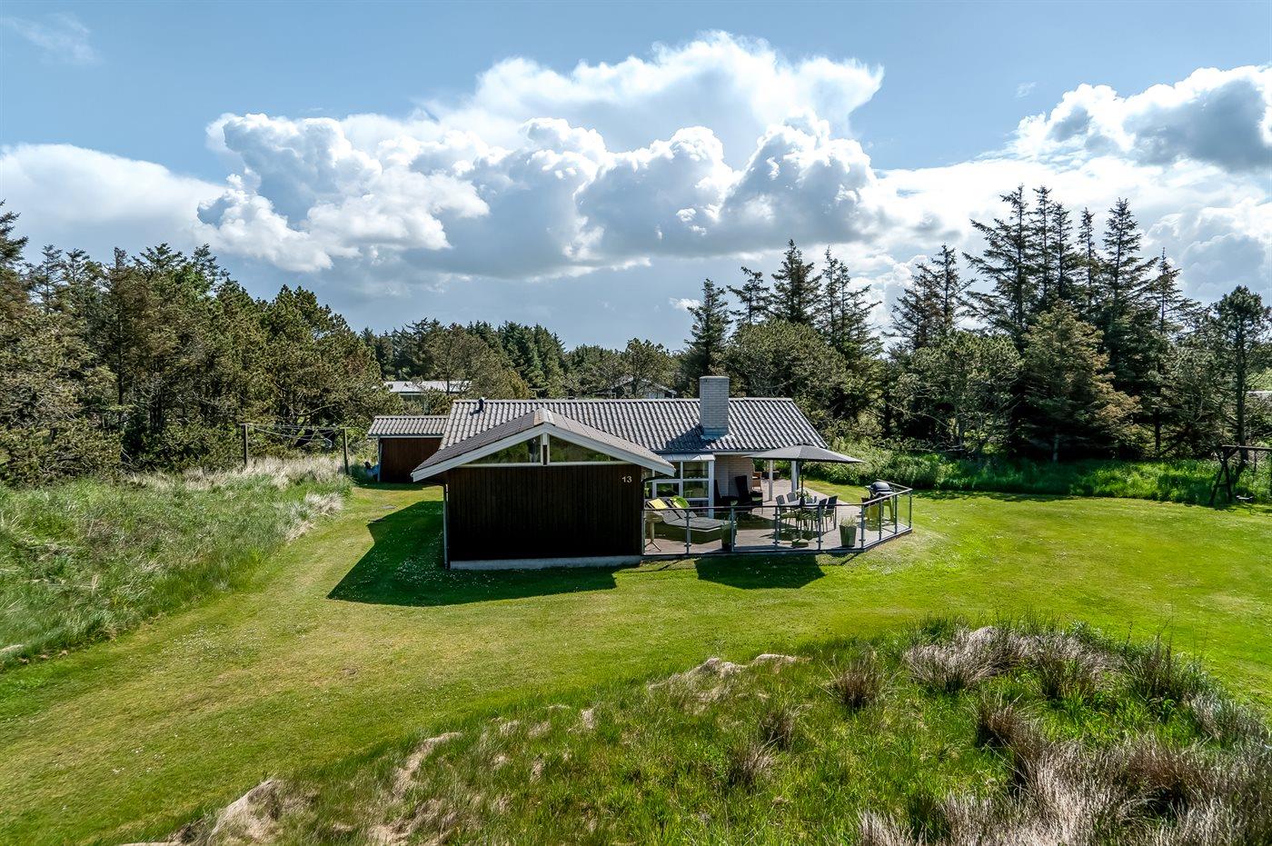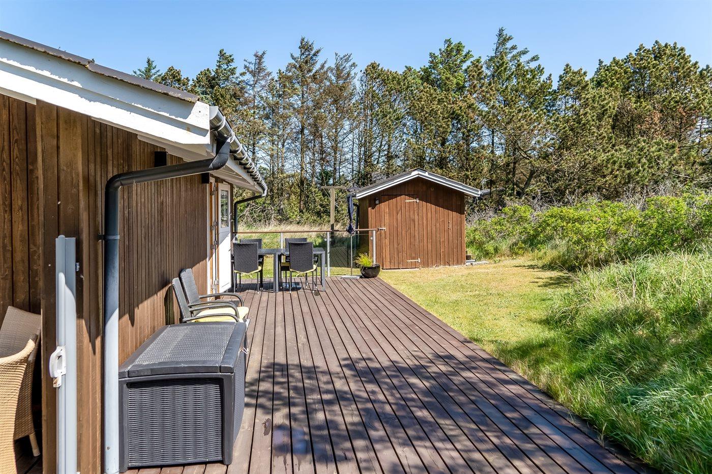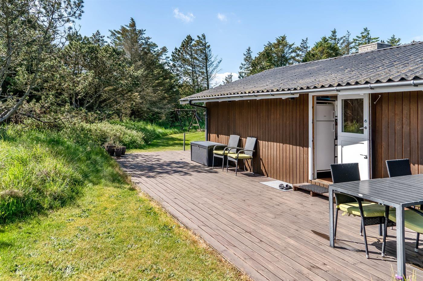De vakantiewoning is gelegen op een 2500 m² groot natuural grond. Afstand tot de zee 800 m. Dichtstbijzijnde winkel 3000 m. Bij de vakantiewoning hoort 70 m² terras. Daarnaast is er een 8 m² groot overdekt terras. Gereedschapsruimte. Schommel. Zandbak. Voetbaldoel. Parkeerplaats bij het huis.