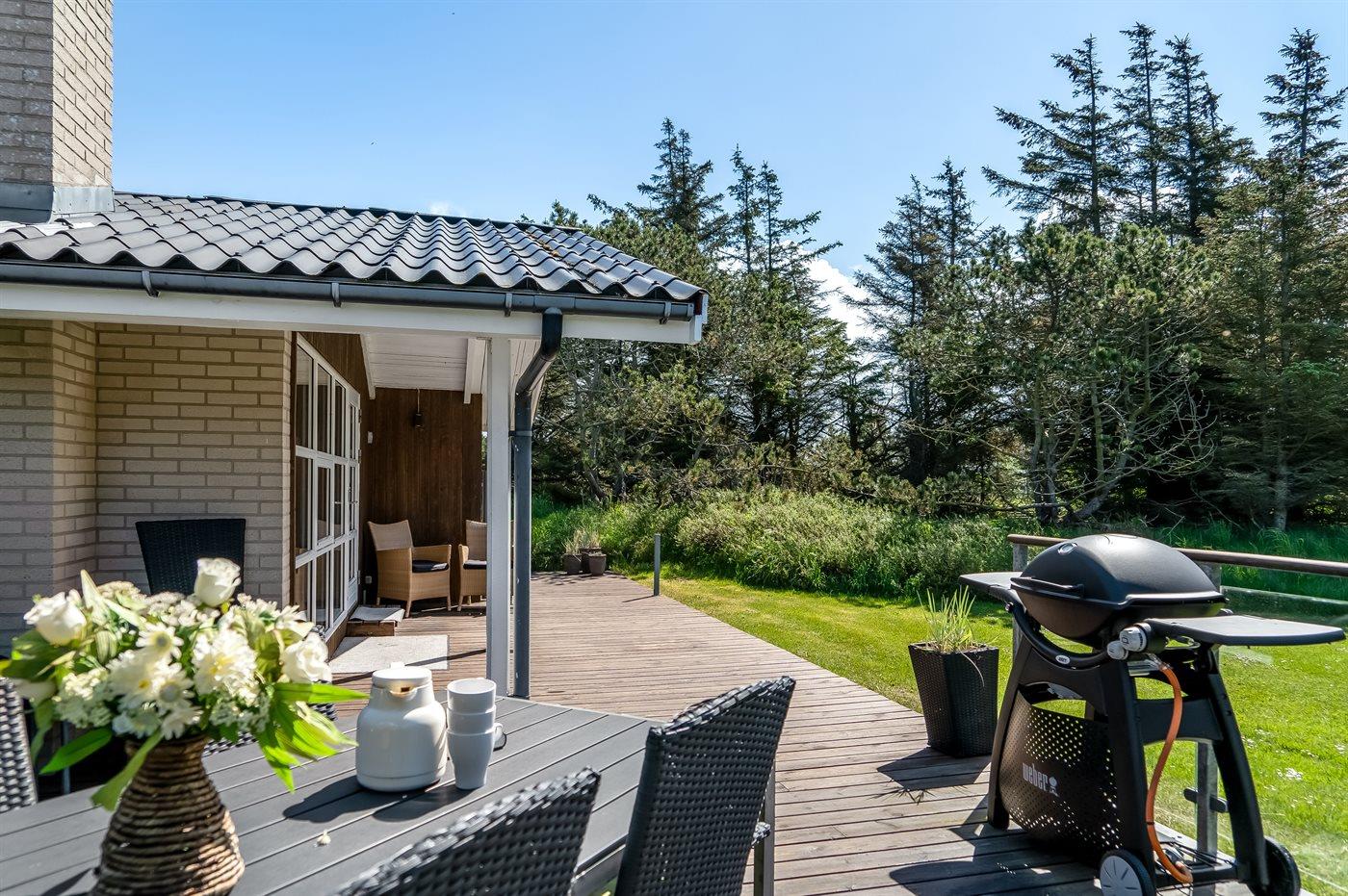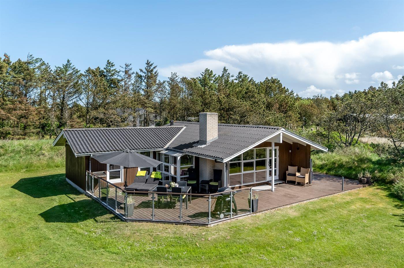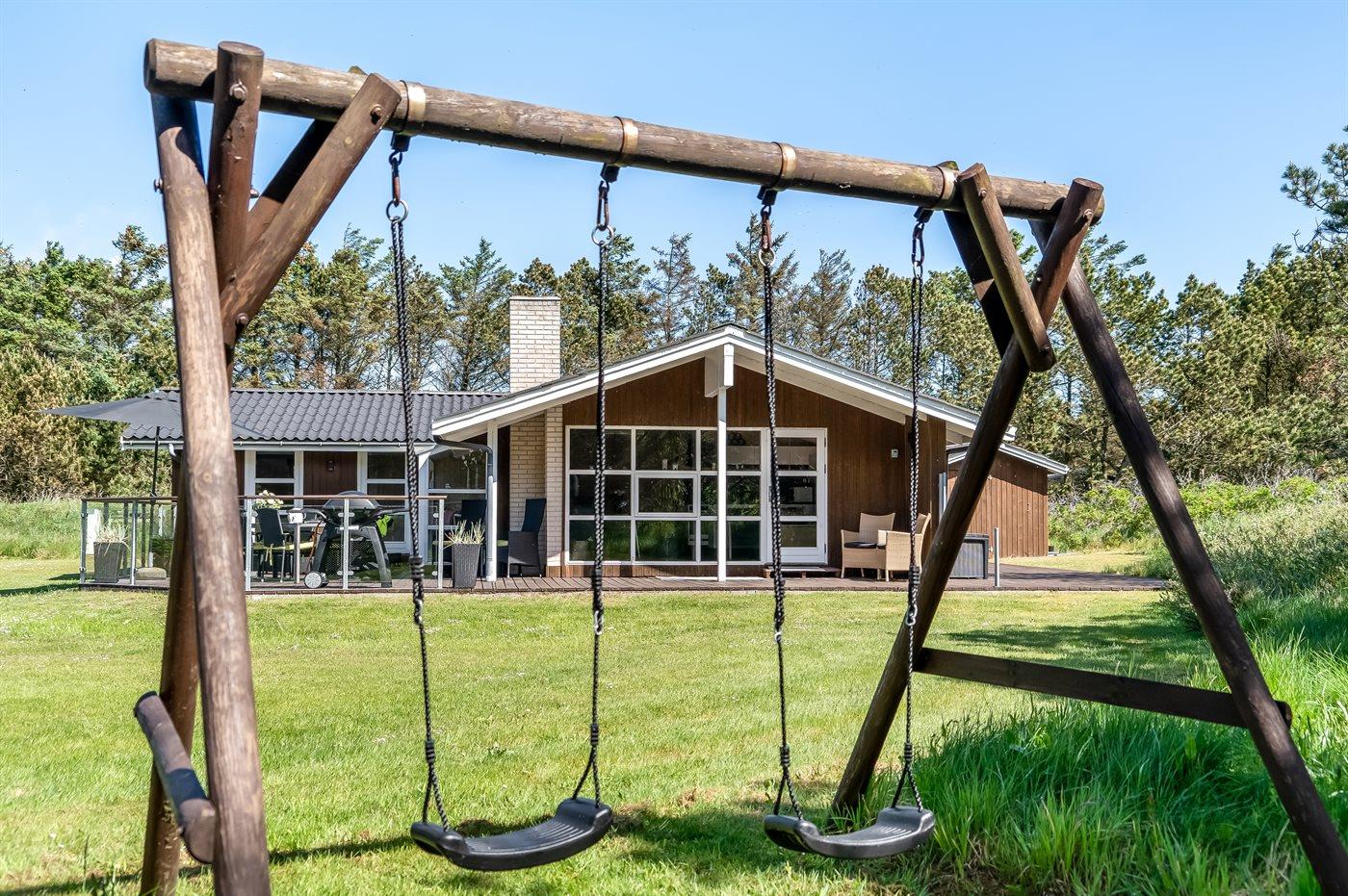 De vakantiewoning is gelegen op een 2500 m² groot natuural grond. Afstand tot de zee 800 m. Dichtstbijzijnde winkel 3000 m. Bij de vakantiewoning hoort 70 m² terras. Daarnaast is er een 8 m² groot overdekt terras. Gereedschapsruimte. Schommel. Zandbak. Voetbaldoel. Parkeerplaats bij het huis.