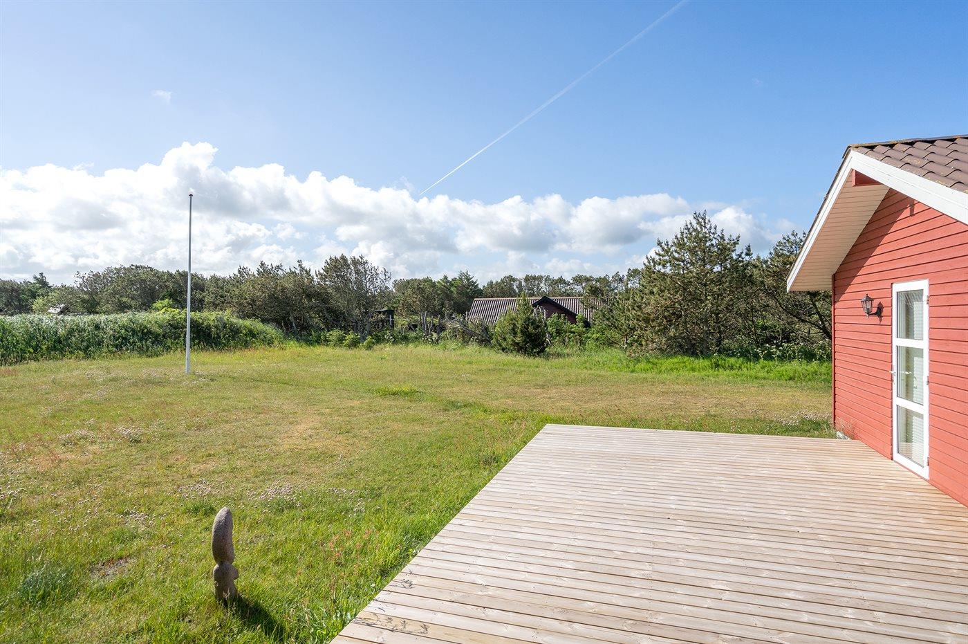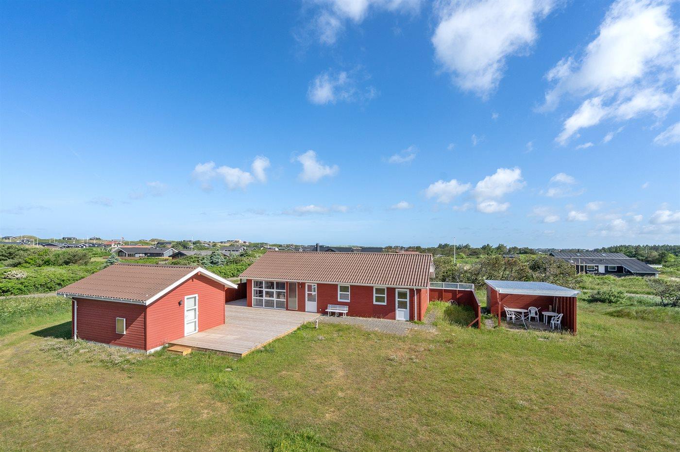 De vakantiewoning is gelegen op een 2500 m² groot natuural grond. Afstand tot de zee 500 m. Dichtstbijzijnde winkel 2000 m. Bij de vakantiewoning hoort 60 m² terras. Daarnaast is er een 4 m² groot overdekt terras. Gereedschapsruimte. Carport ter beschikking. Parkeerplaats bij het huis.