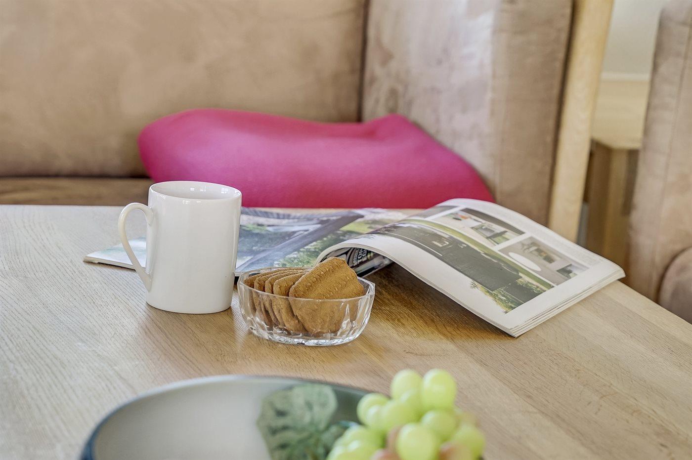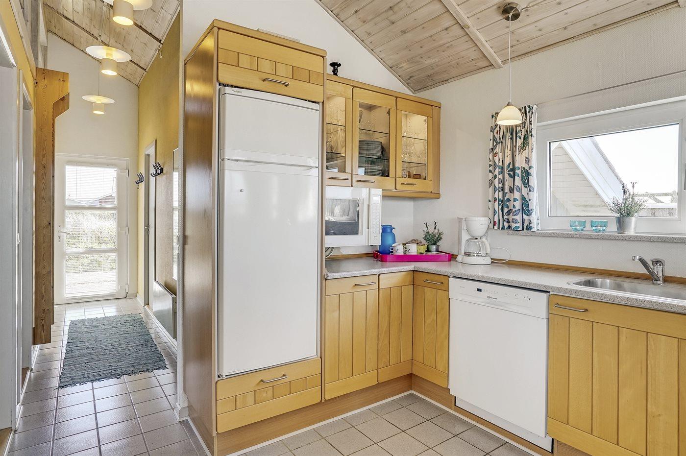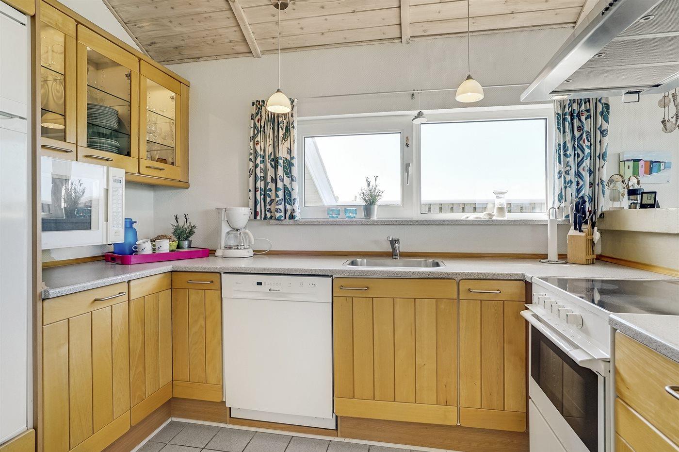 De keuken is uitgerust met koelkast Er zijn 4 keramische kookplaten, heteluchtoven, magnetron en vaatwasser.