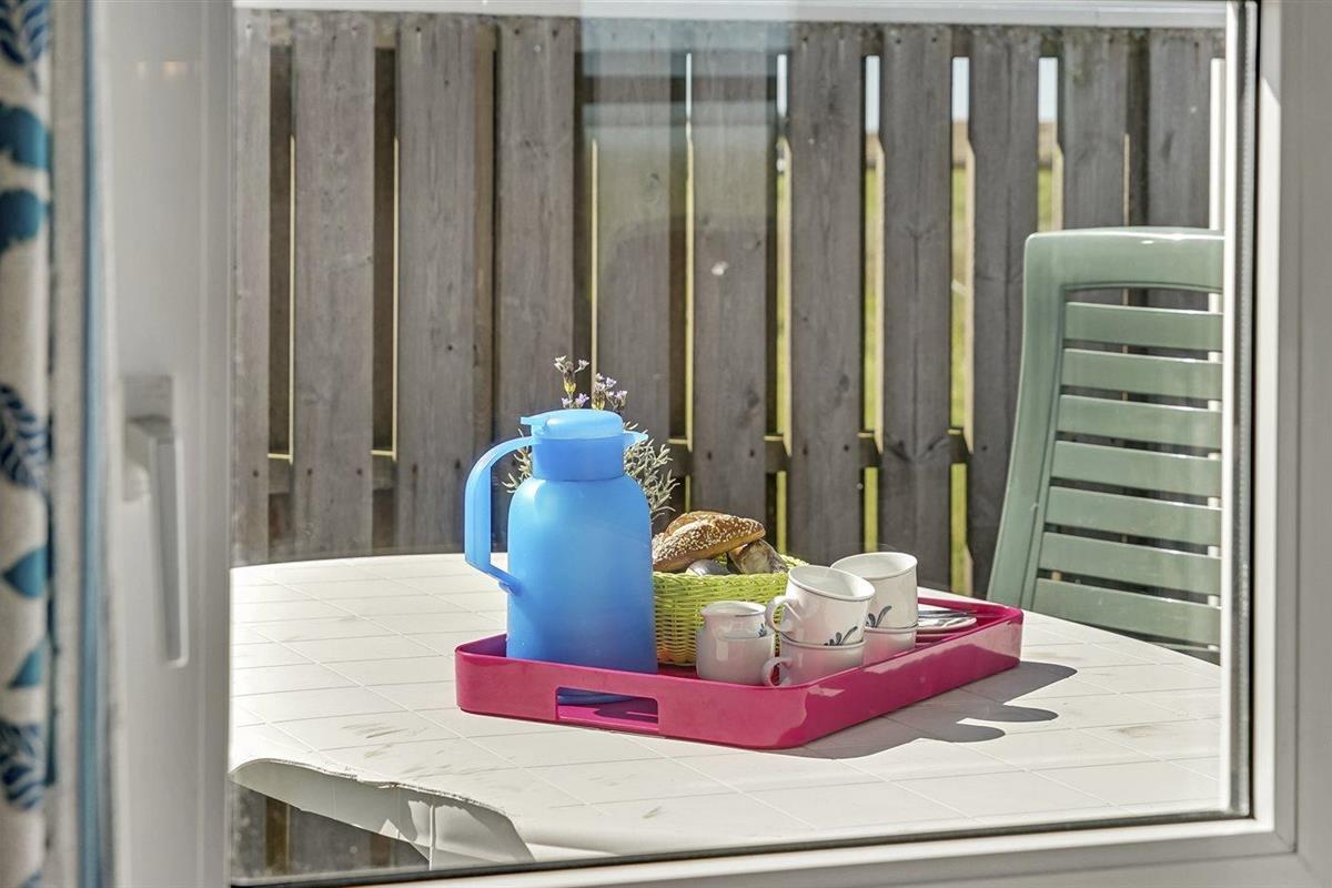 De vakantiewoning is gelegen op een 1250 m² groot natuural grond. Afstand tot de zee 350 m. Dichtstbijzijnde winkel 350 m. Bij de vakantiewoning hoort 75 m² terras. Gereedschapsruimte. Schommel. Parkeerplaats bij het huis.