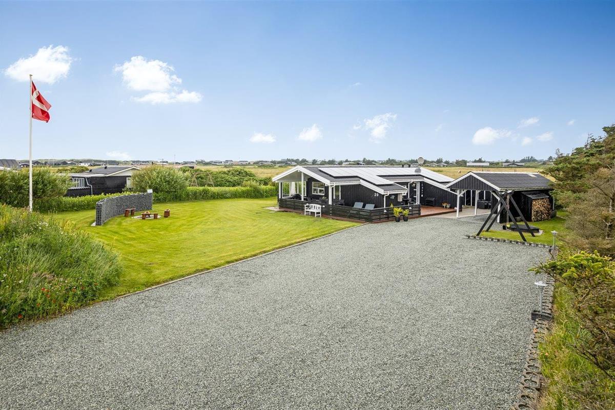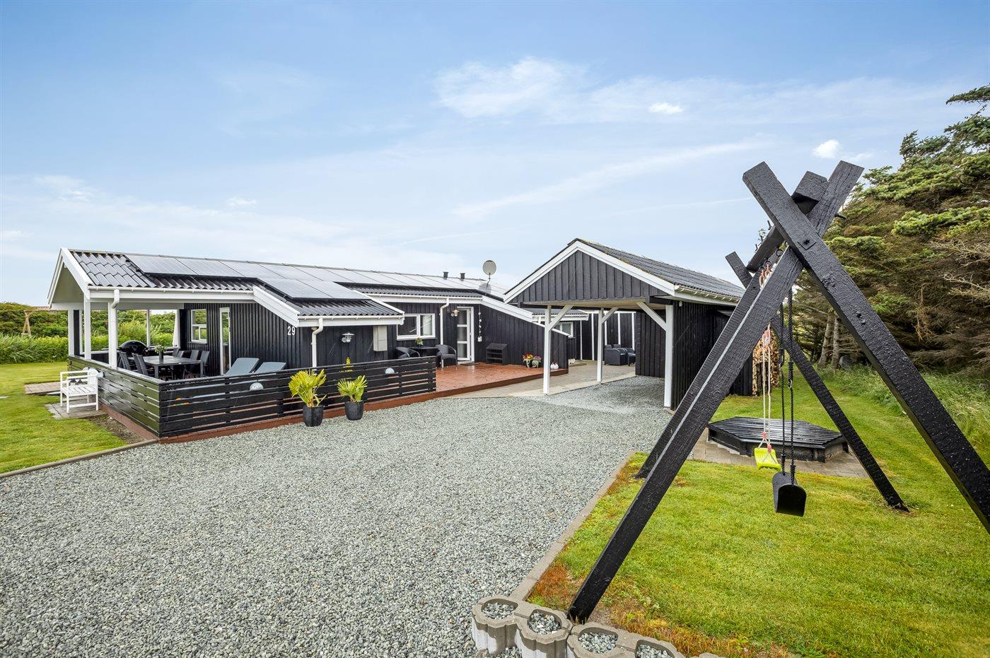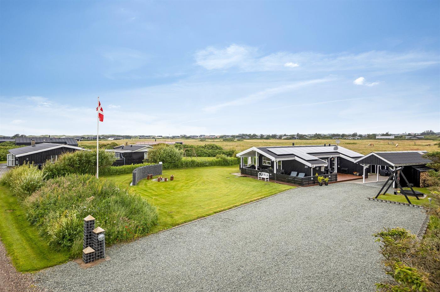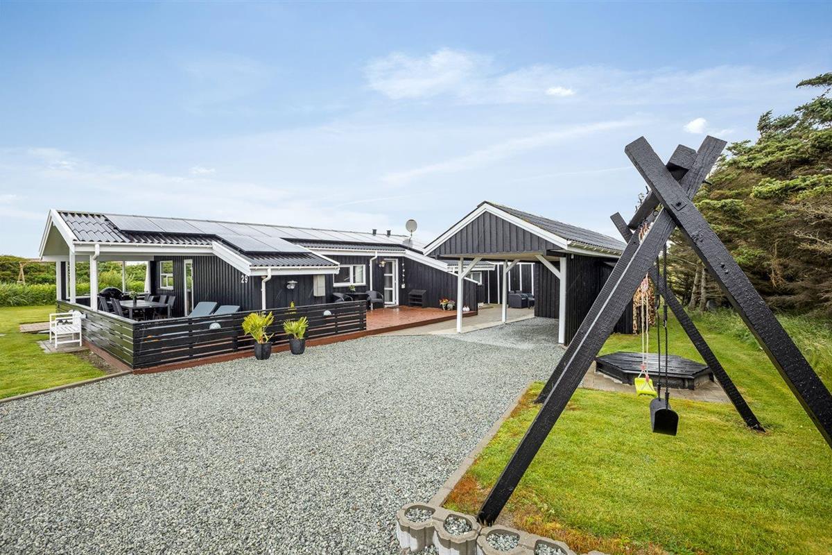 De vakantiewoning is gelegen op een 1550 m² groot natuural grond. Afstand tot de zee 700 m. Dichtstbijzijnde winkel 1800 m. Er is een golfbaan op een afstand van 1900 m. Bij de vakantiewoning hoort 45 m² terras. Daarnaast is er een 15 m² groot overdekt terras. Gereedschapsruimte. Schommel. Zandbak. Carport ter beschikking. Het huis heeft een stopcontact voor het opladen van een elektrische auto. Parkeerplaats bij het huis.