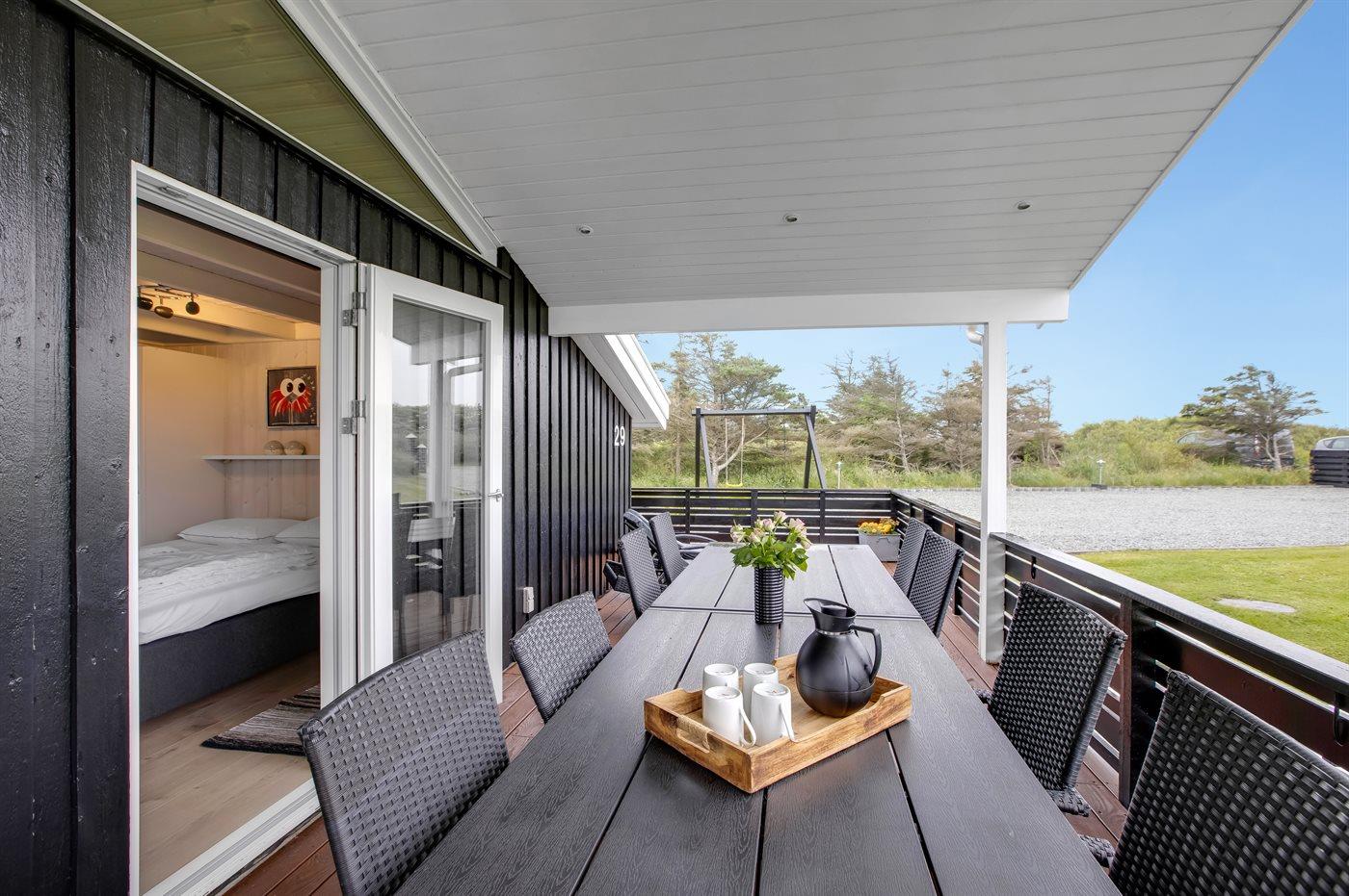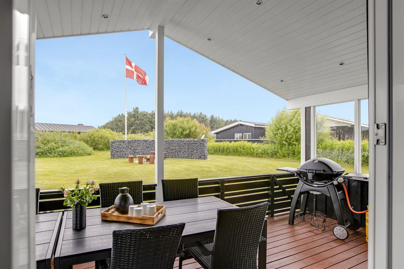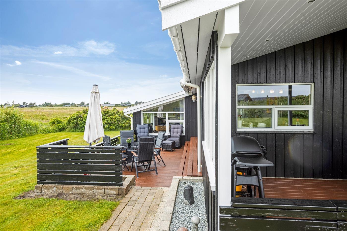 De vakantiewoning is gelegen op een 1550 m² groot natuural grond. Afstand tot de zee 700 m. Dichtstbijzijnde winkel 1800 m. Er is een golfbaan op een afstand van 1900 m. Bij de vakantiewoning hoort 45 m² terras. Daarnaast is er een 15 m² groot overdekt terras. Gereedschapsruimte. Schommel. Zandbak. Carport ter beschikking. Het huis heeft een stopcontact voor het opladen van een elektrische auto. Parkeerplaats bij het huis.