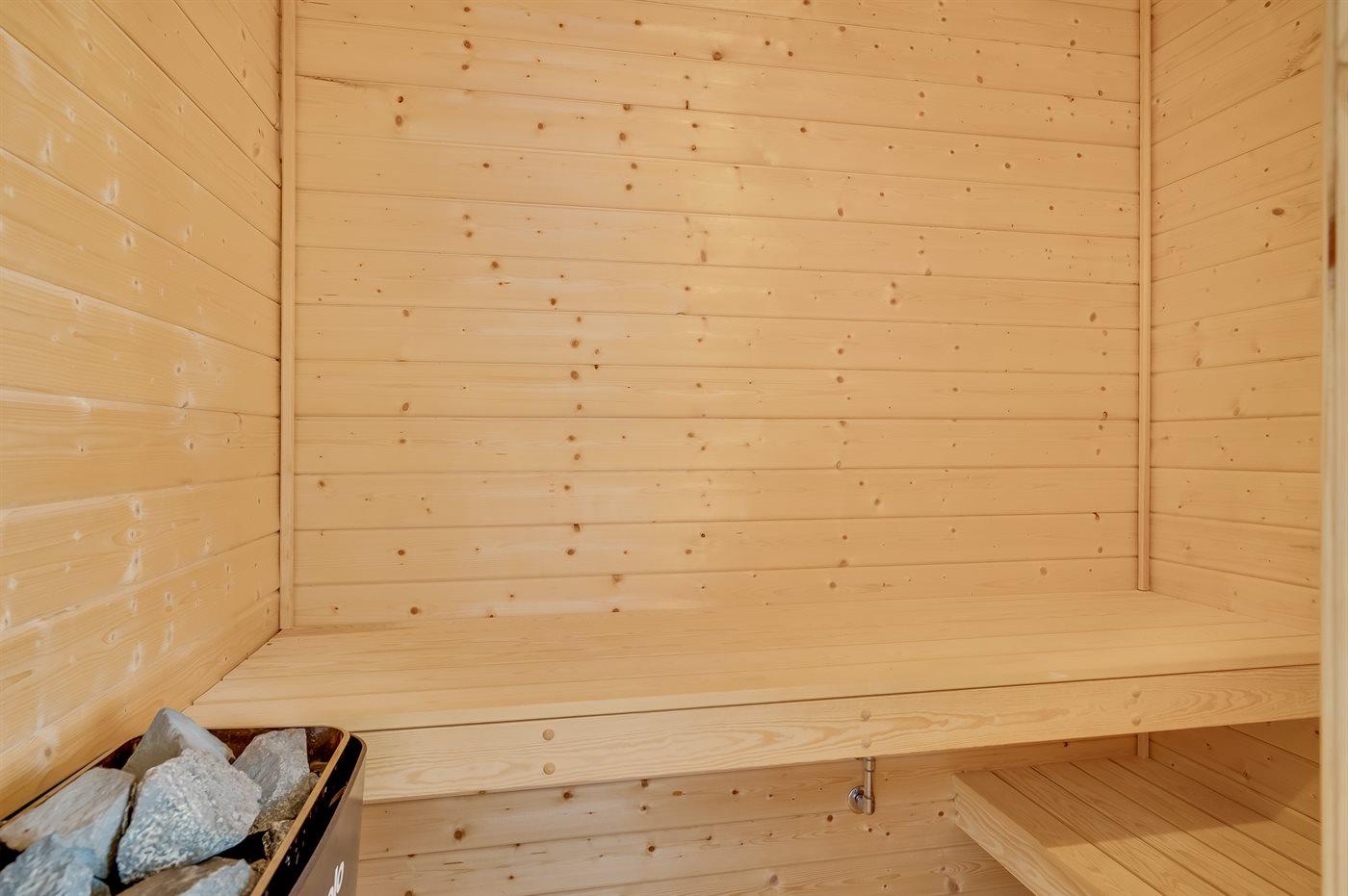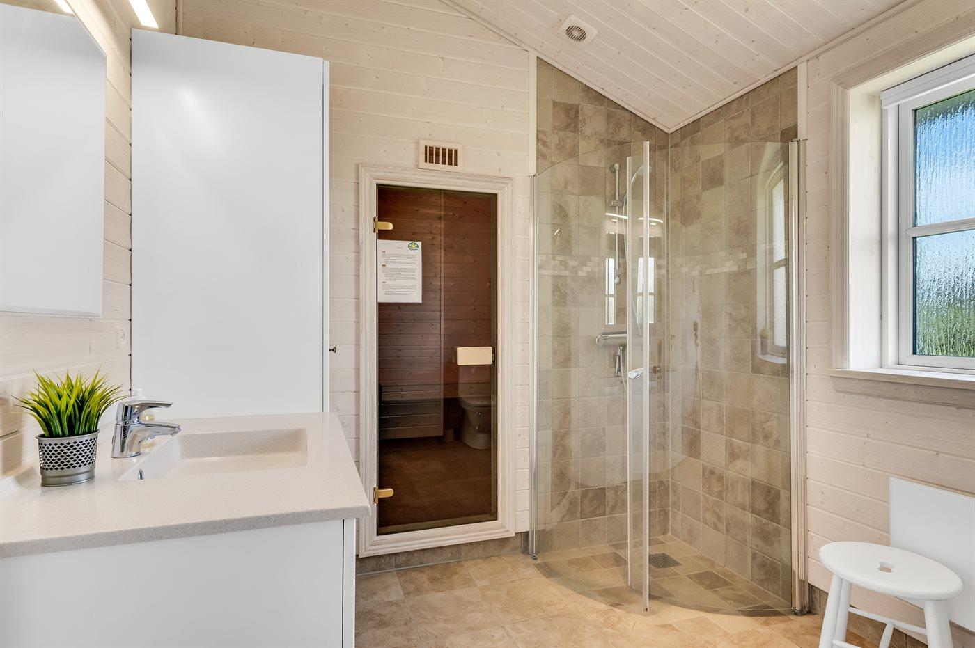 Er is 1 badkamer met douchehok en 1 toilet.. Er is vloerverwarming in 1 badkamer. De sauna biedt de gelegenheid tot ontspanning.