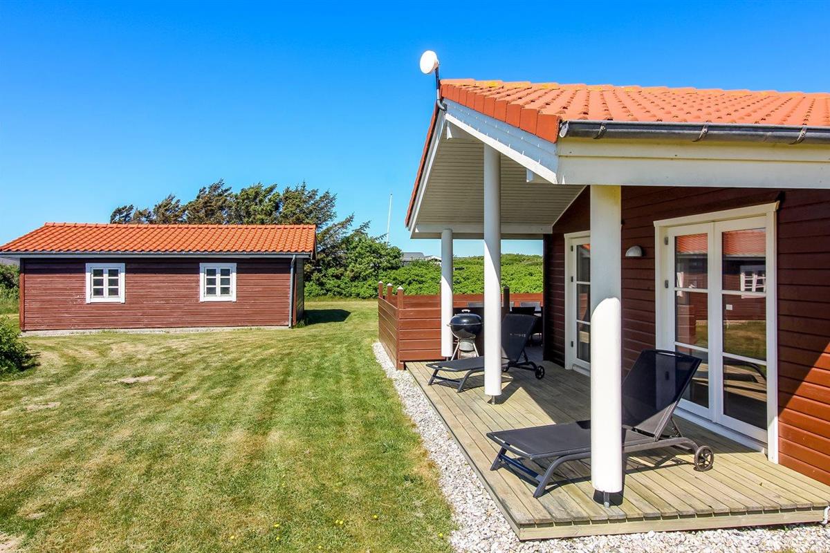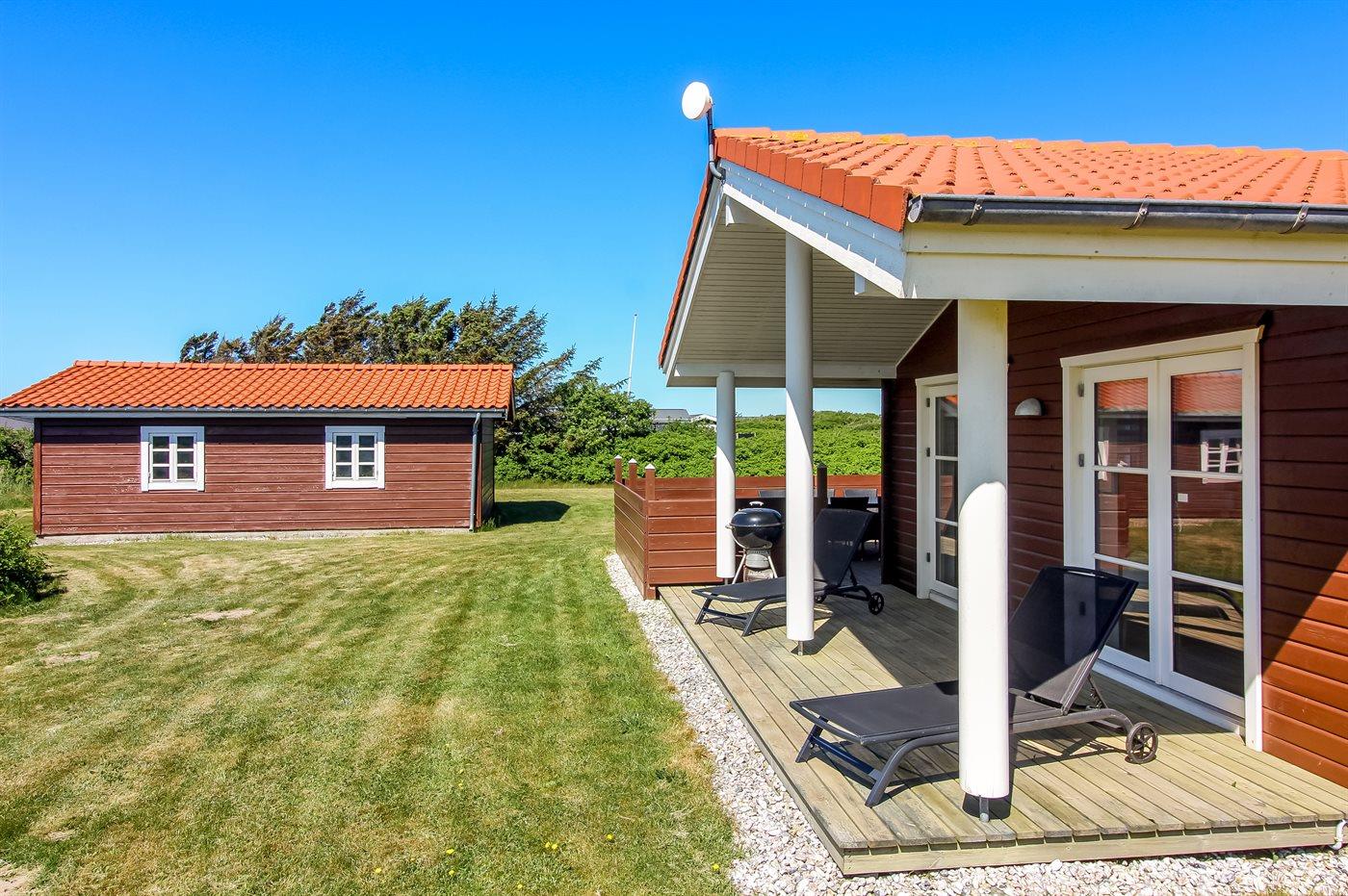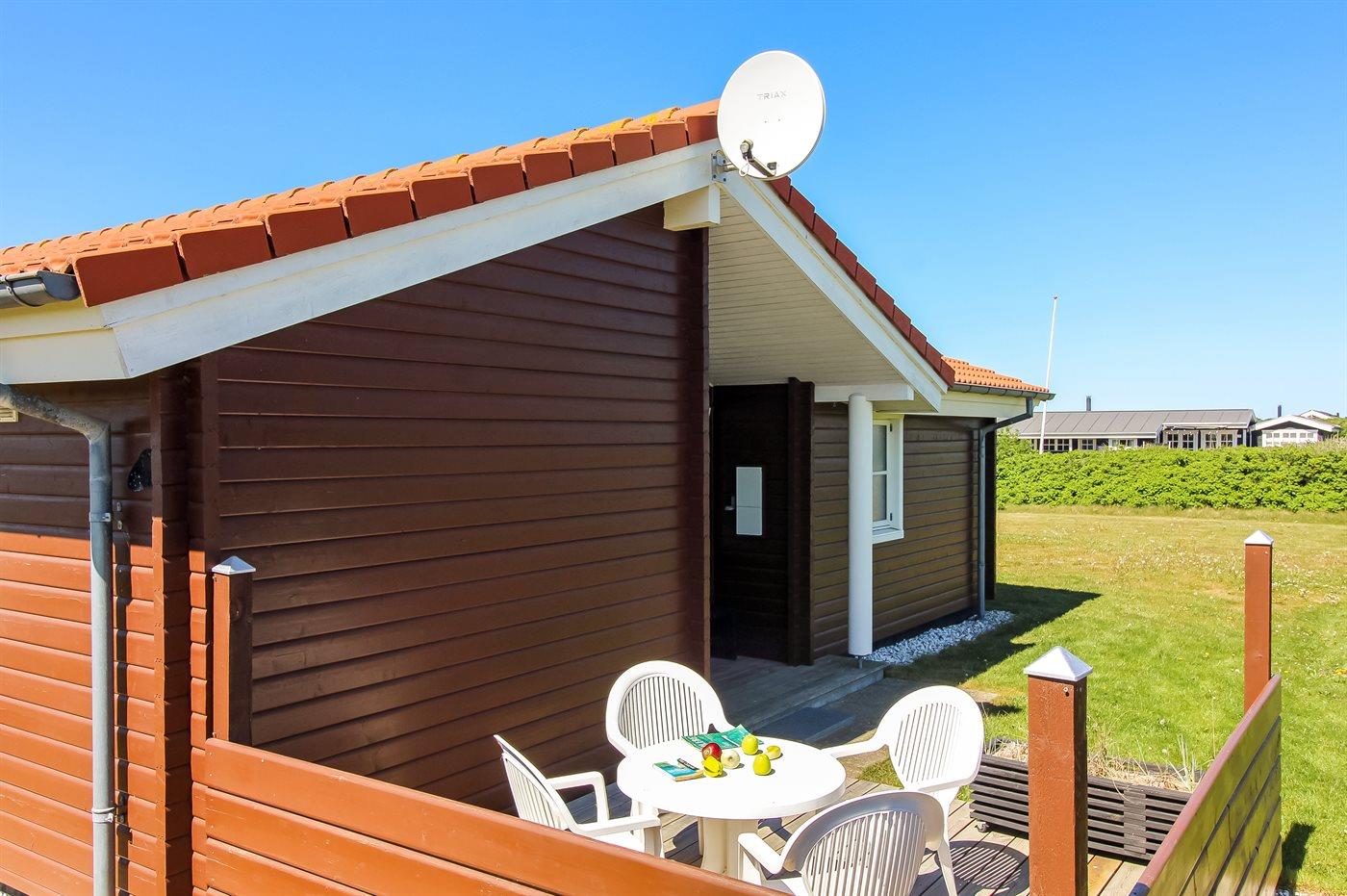 De vakantiewoning is gelegen op een 2414 m² groot natuural grond. Afstand tot de zee 300 m. Dichtstbijzijnde winkel 1500 m. Bij de vakantiewoning hoort 25 m² terras. Daarnaast is er een 20 m² groot overdekt terras. Gereedschapsruimte. Parkeerplaats bij het huis.