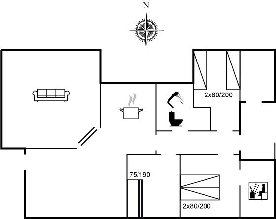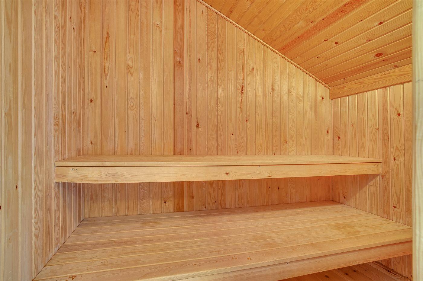 Er is 1 badkamer met douchehok en 1 toilet. De sauna biedt de gelegenheid tot ontspanning.