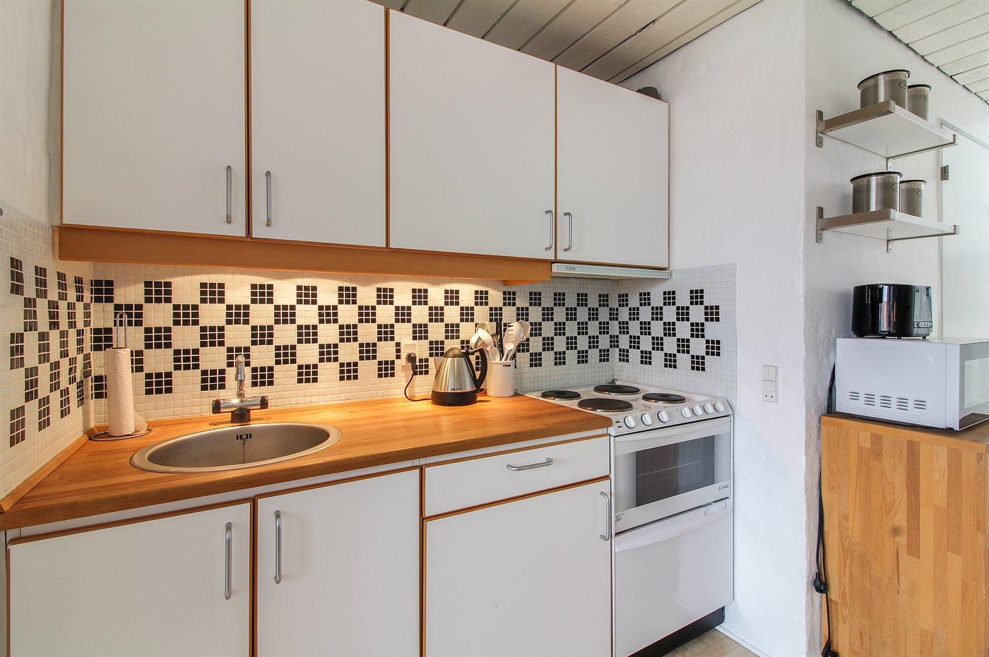 De keuken is uitgerust met koelkast Er is 4 elektrische kookplaten, bakoven, magnetron en vaatwasser.