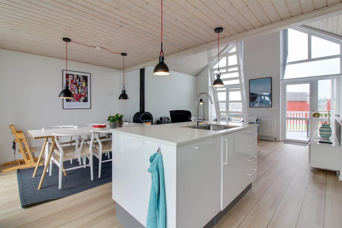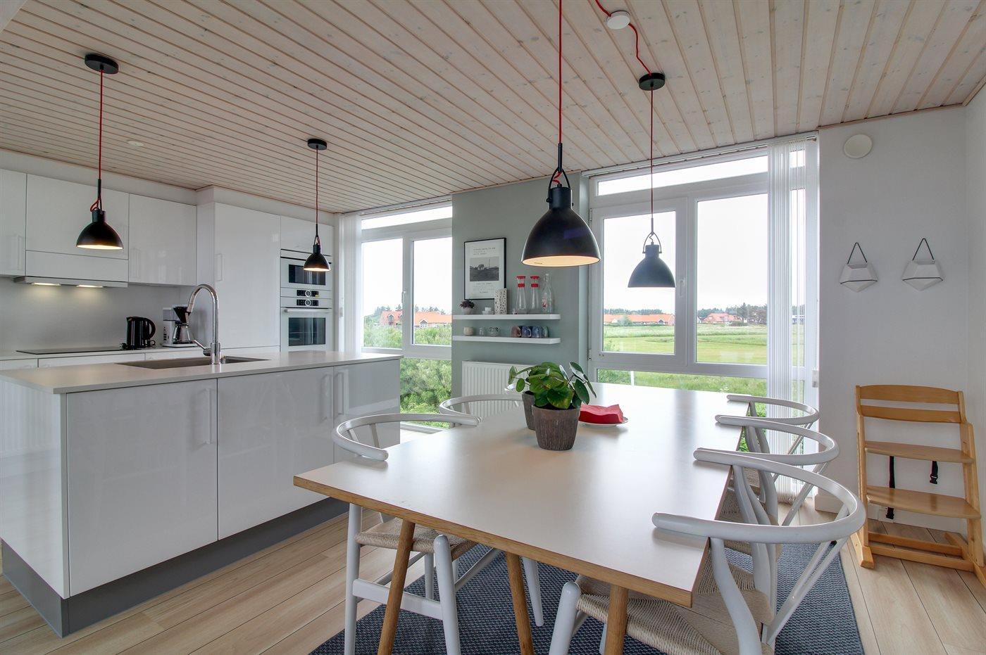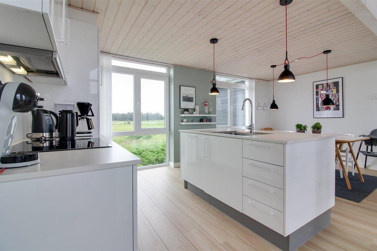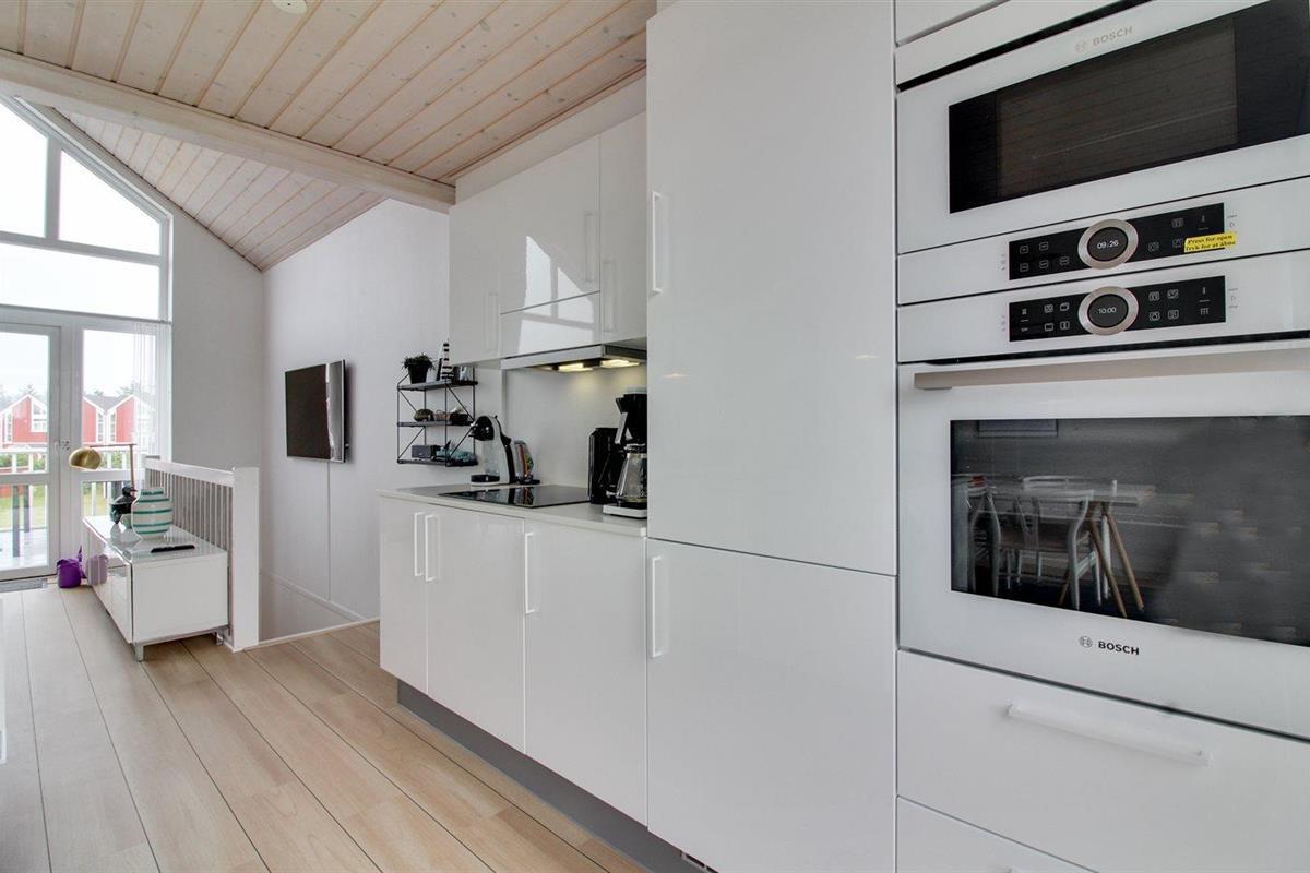 De keuken is uitgerust met koelkast Er is 3 inductiekookplaten, heteluchtoven, magnetron en vaatwasser.
