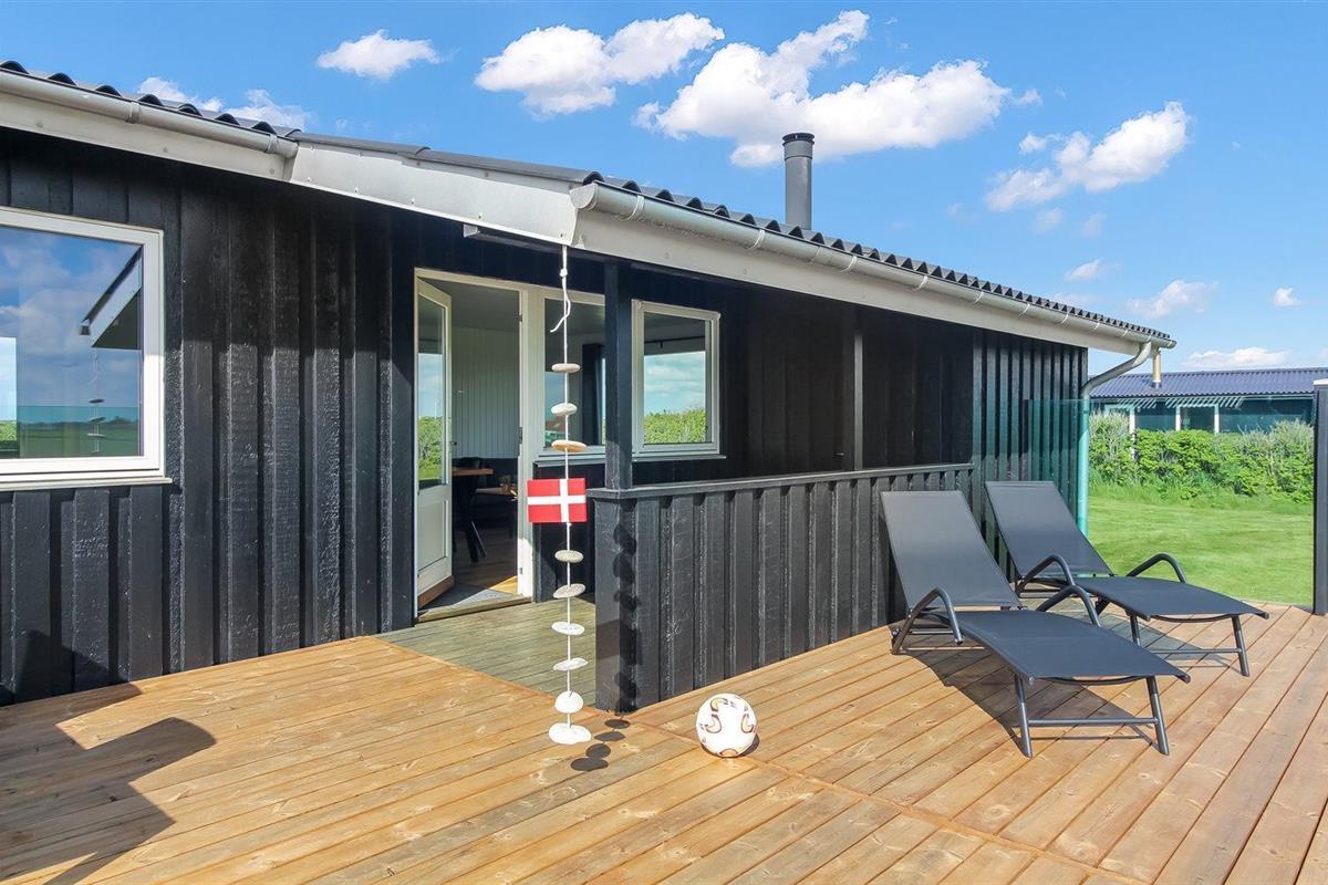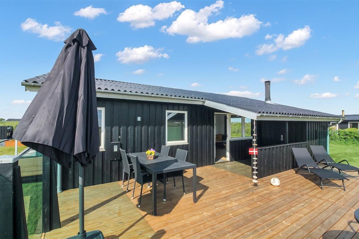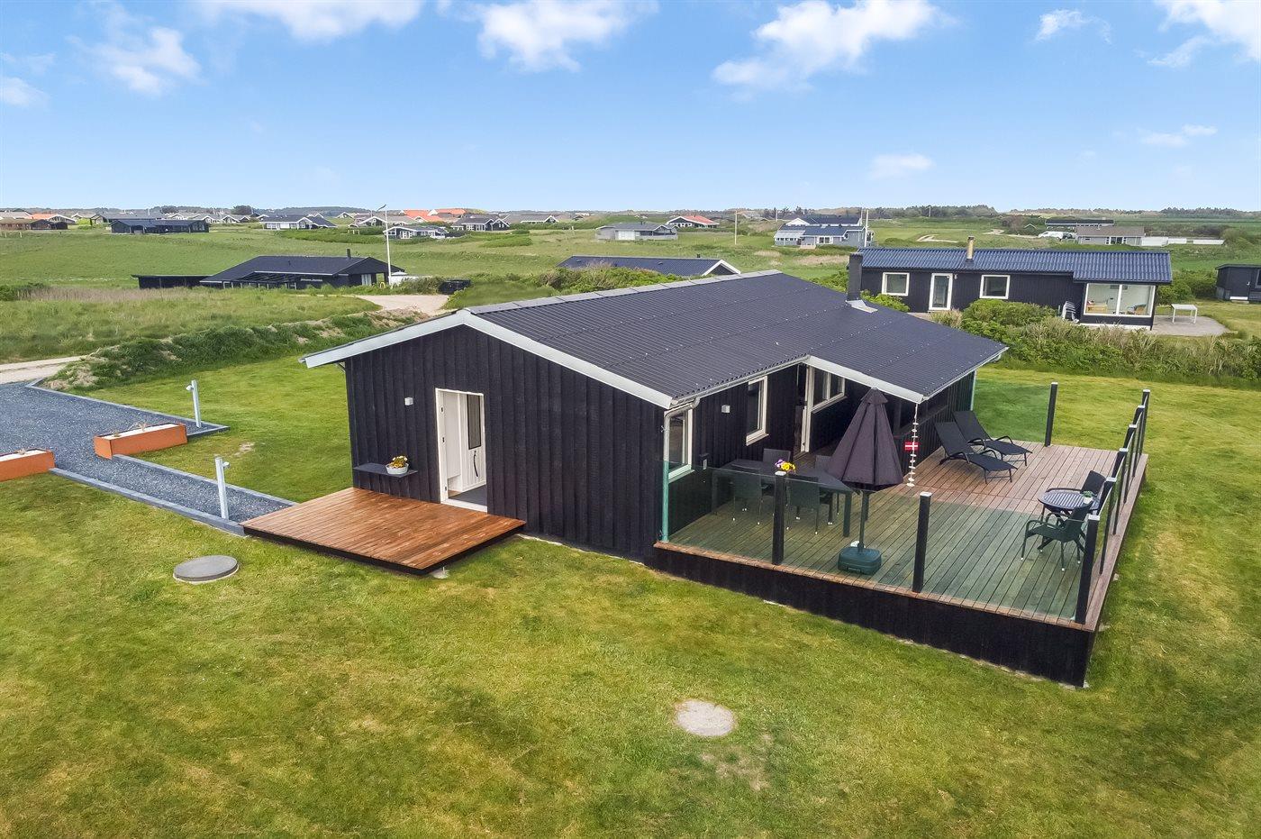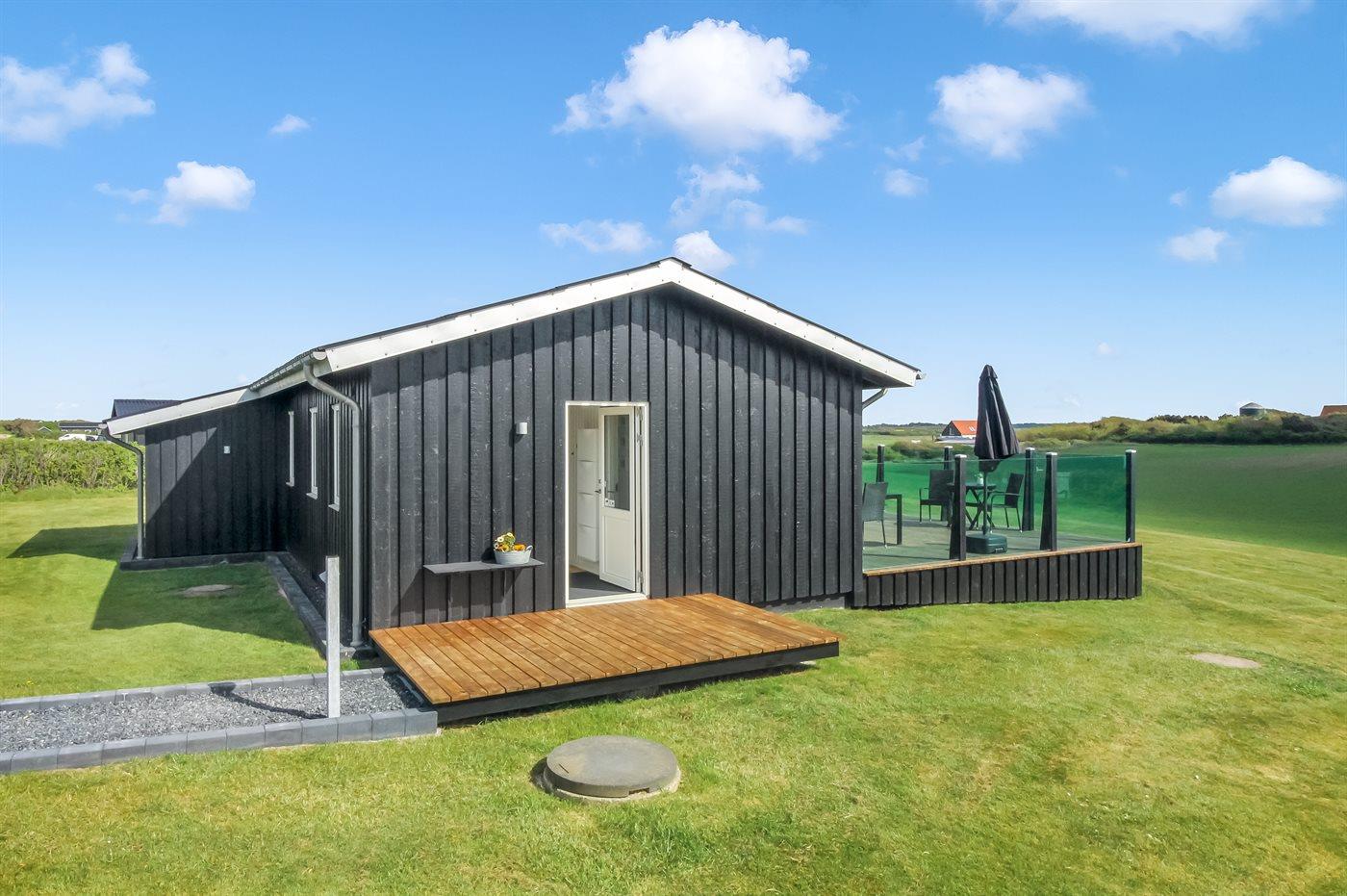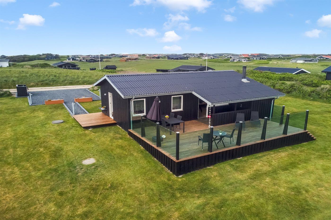 De vakantiewoning is gelegen op een 1273 m² groot natuural grond. Afstand tot de zee 450 m. Dichtstbijzijnde winkel 1200 m. Bij de vakantiewoning hoort 48 m² terras. Daarnaast is er een 10 m² groot overdekt terras. Schommel. Gasbarbecue ter beschikking. Parkeerplaats bij het huis.