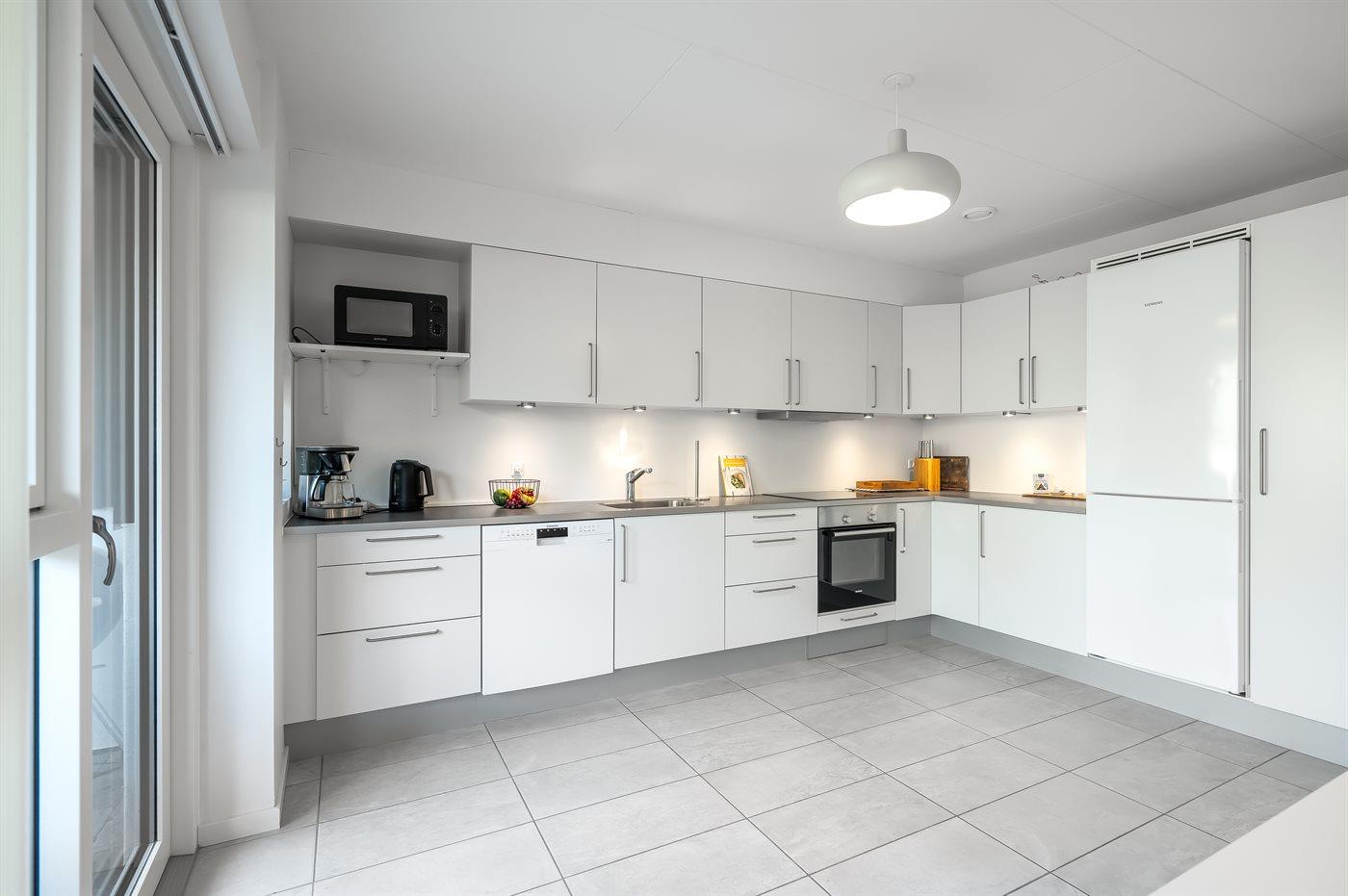 De keuken is uitgerust met koelkast Er zijn 4 keramische kookplaten, heteluchtoven, magnetron en vaatwasser. Vloerverwarming in de keuken.